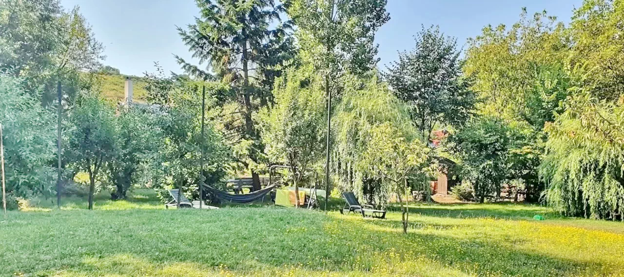 - Játszótér a kertben (hinta, homokozó, trambulin)