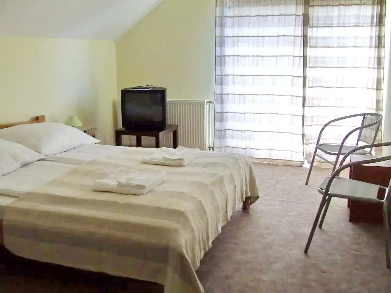 - A panzióban 10 szoba található, fürdővel, erkéllyel, kábel TV, internet, jól felszerelt konyha, hal, étkező. A szobák nagy méretűek, levegősek, világosak, felszerelésük egy francia ágy és egy pót ágy.
