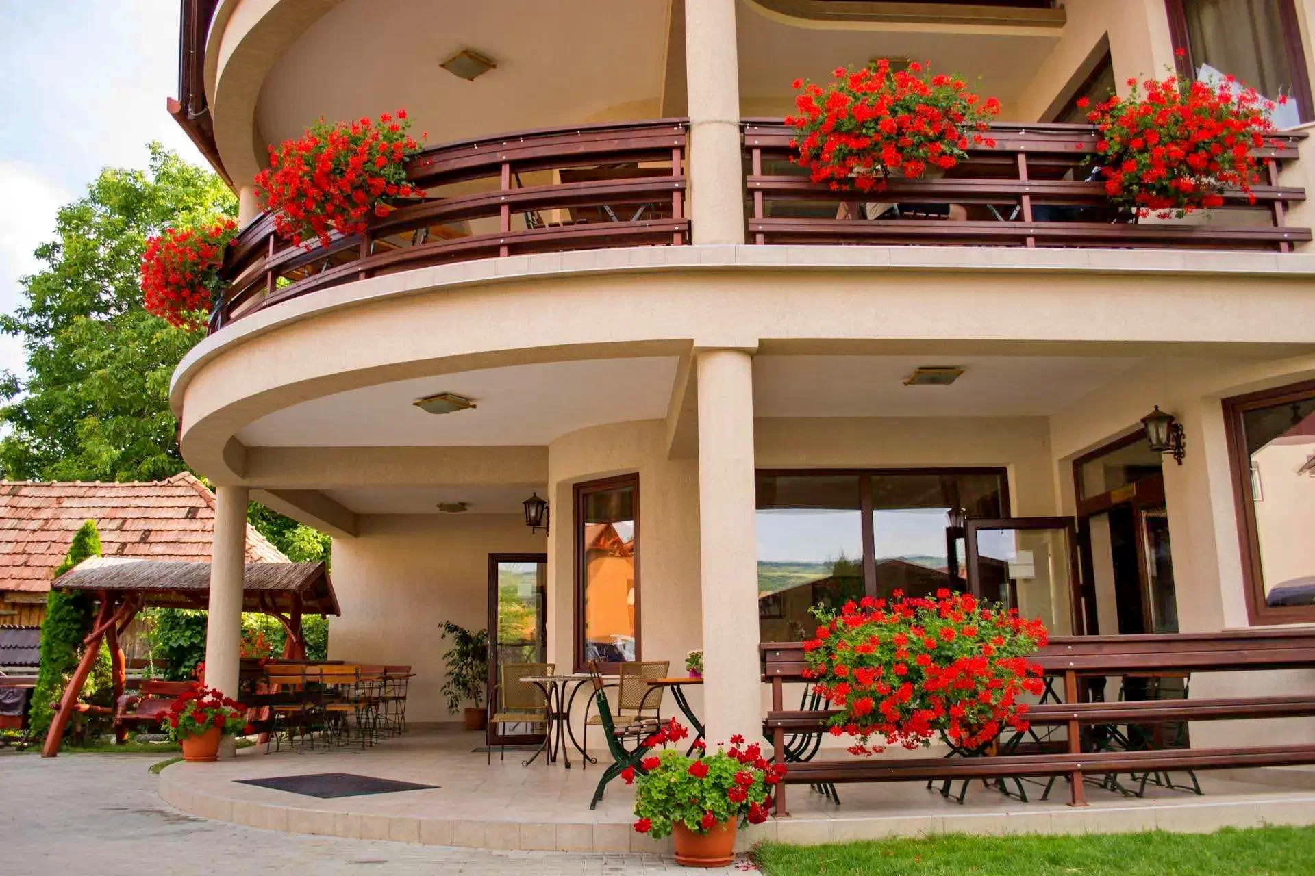 - Úgy a panzió, mint a kisházak szállóvendégei igénybe vehetik a panzió kertjében található szabadidős programok számára kialakított felületen filagória nyújtotta lehetőségeket.