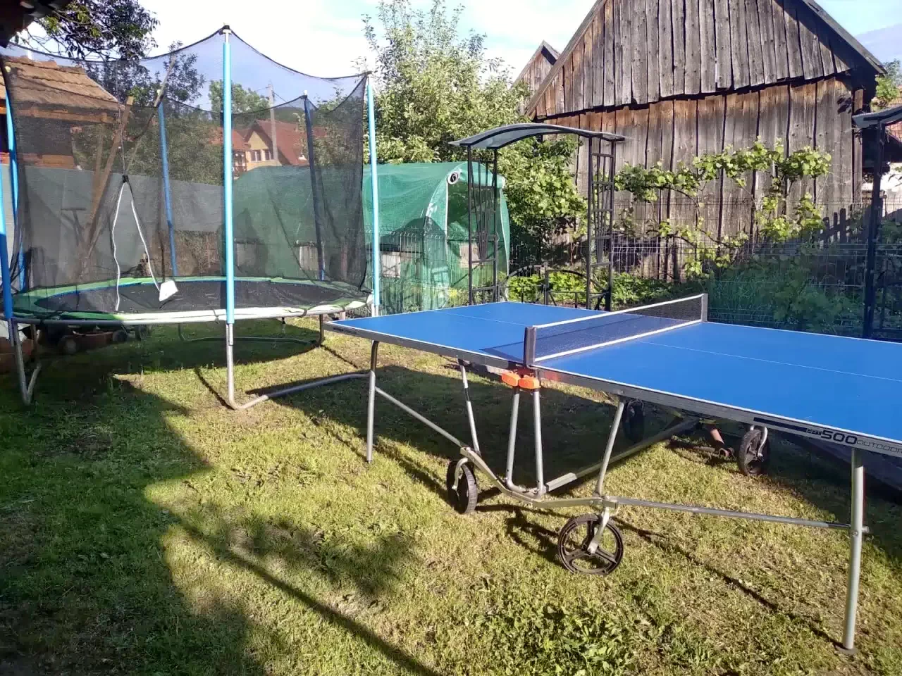 A ház udvara szépen gondozott és sok virággal díszített, gyermekjátszótérrel rendelkezik. Kerti bútorokkal, grillező hellyel van felszerelve, és ideális a szabadtéri programokhoz. Az autóját biztonságosan parkolhatja a ház udvarában.