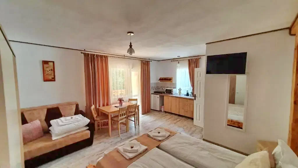 - 1 nagy franciaágy és 1 kihúzható kanapé 2 felnőtt és 2 gyerek, vagy 3 felnőtt részére.