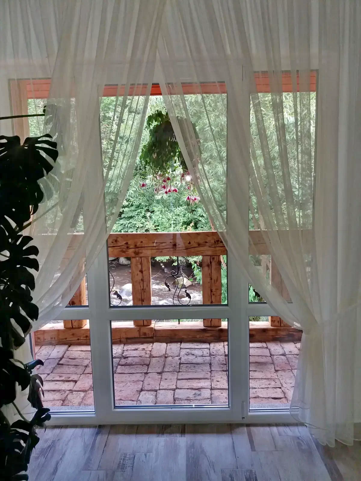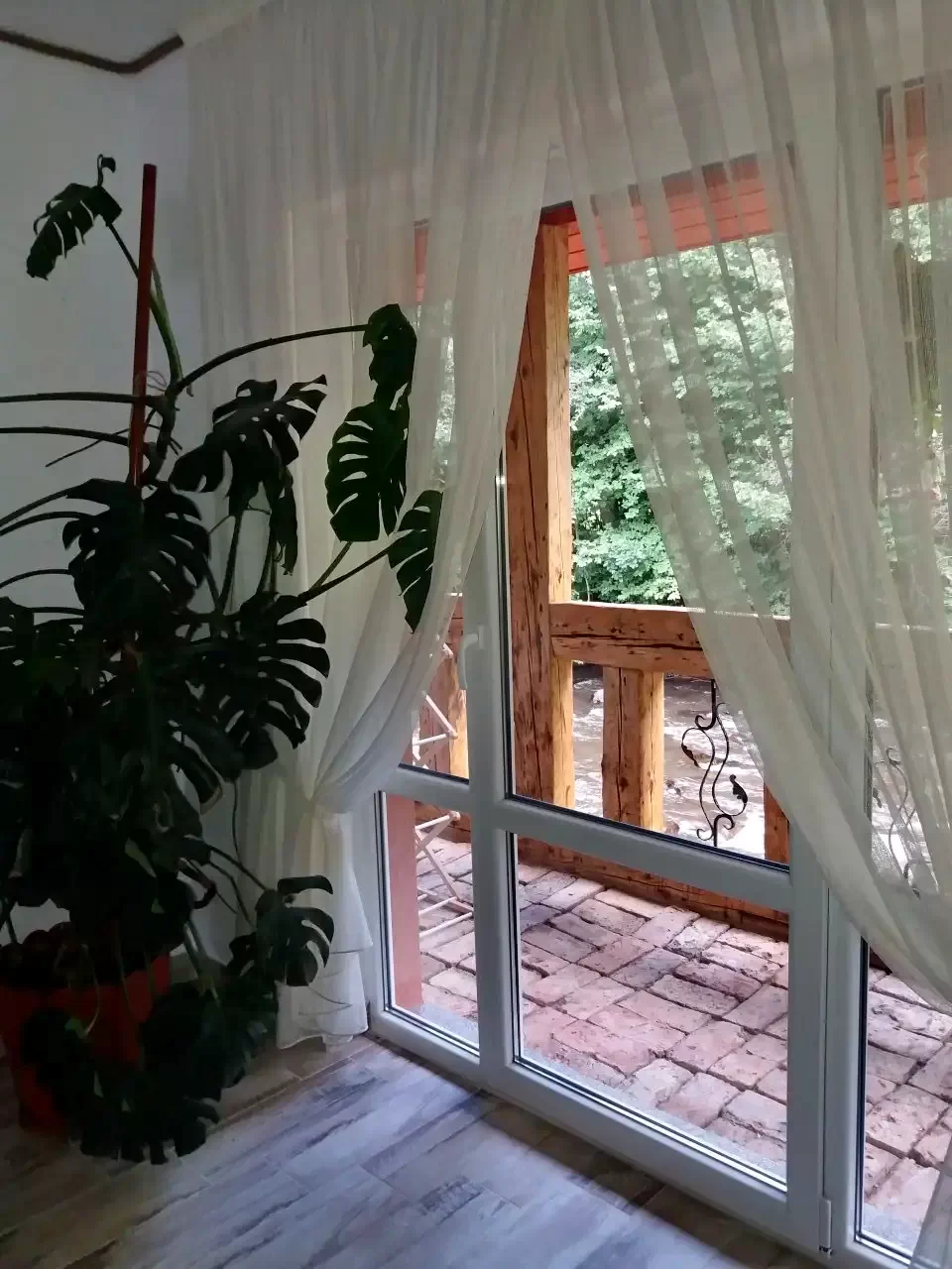 - függő hintaszékek és padok a tornácon és a teraszon