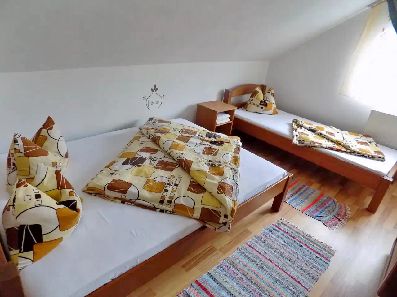 - A vendégek külön bejáraton keresztül juthatnak be a vendégház 3 külön-bejáratú 3 személyes szobájába. Mind a 3 szobában egyenként 3 egyszemélyes ágy, valamint saját belső fürdőszoba található.