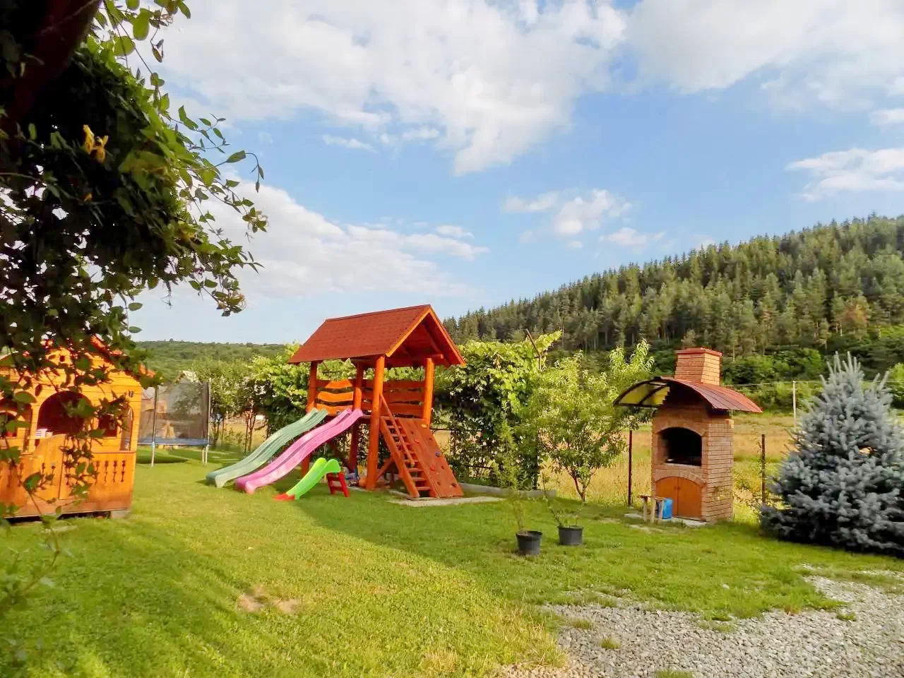 - A vendégház "gyerekbarát" udvarral felszerelt, ahol zöldfelület, számos játék, trambulin, csúszda, hinta található, mely rendkívül alkalmassá és vonzóvá varázsolja a gyermekes családok számára.