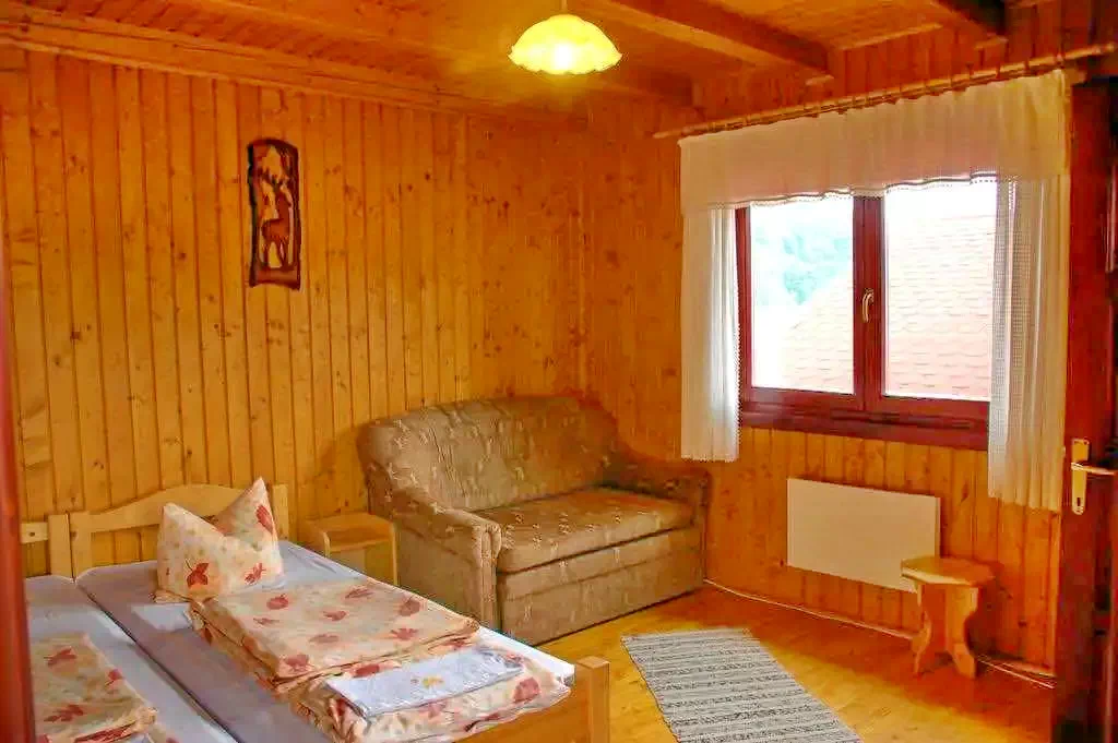 - Szoba (2 egyszemélyes ágy és egy kétfős kanapé).