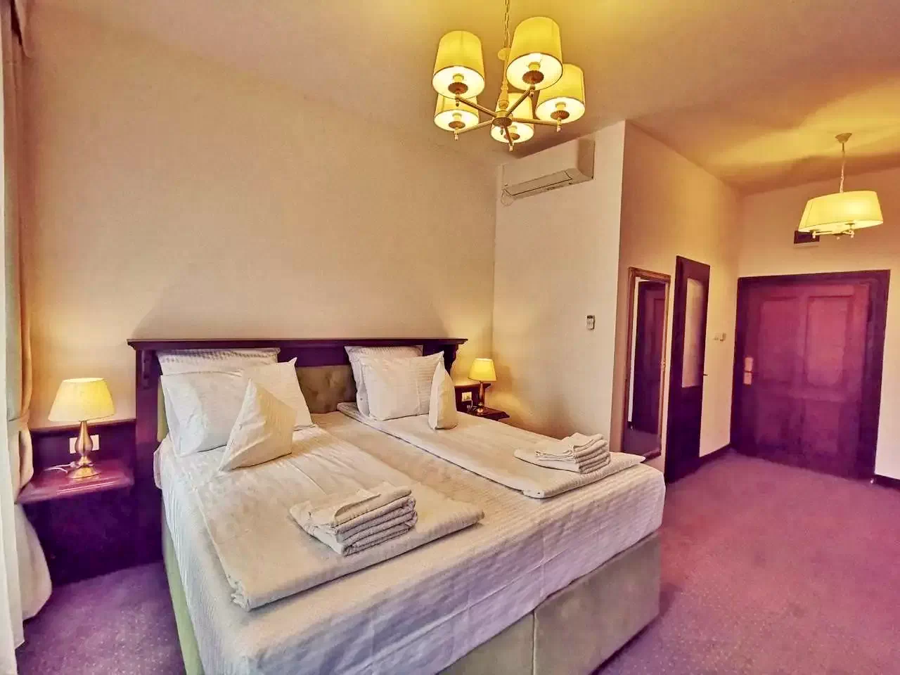 - 1 db franciaágyas szoba nagy méretű ággyal.