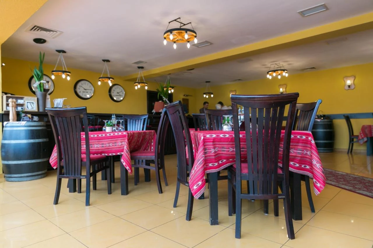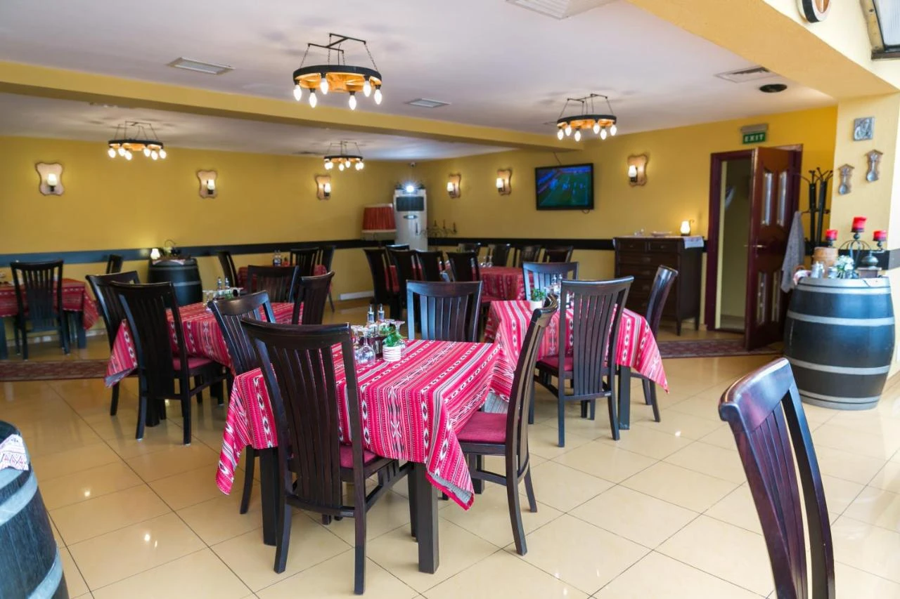 - A hotel étterme 60 fő befogadására alkalmas, és a helyi konyha specialitásaira specializálódott. A vendégek ízletes ételeket élvezhetnek kellemes környezetben vagy a hotel teraszán.