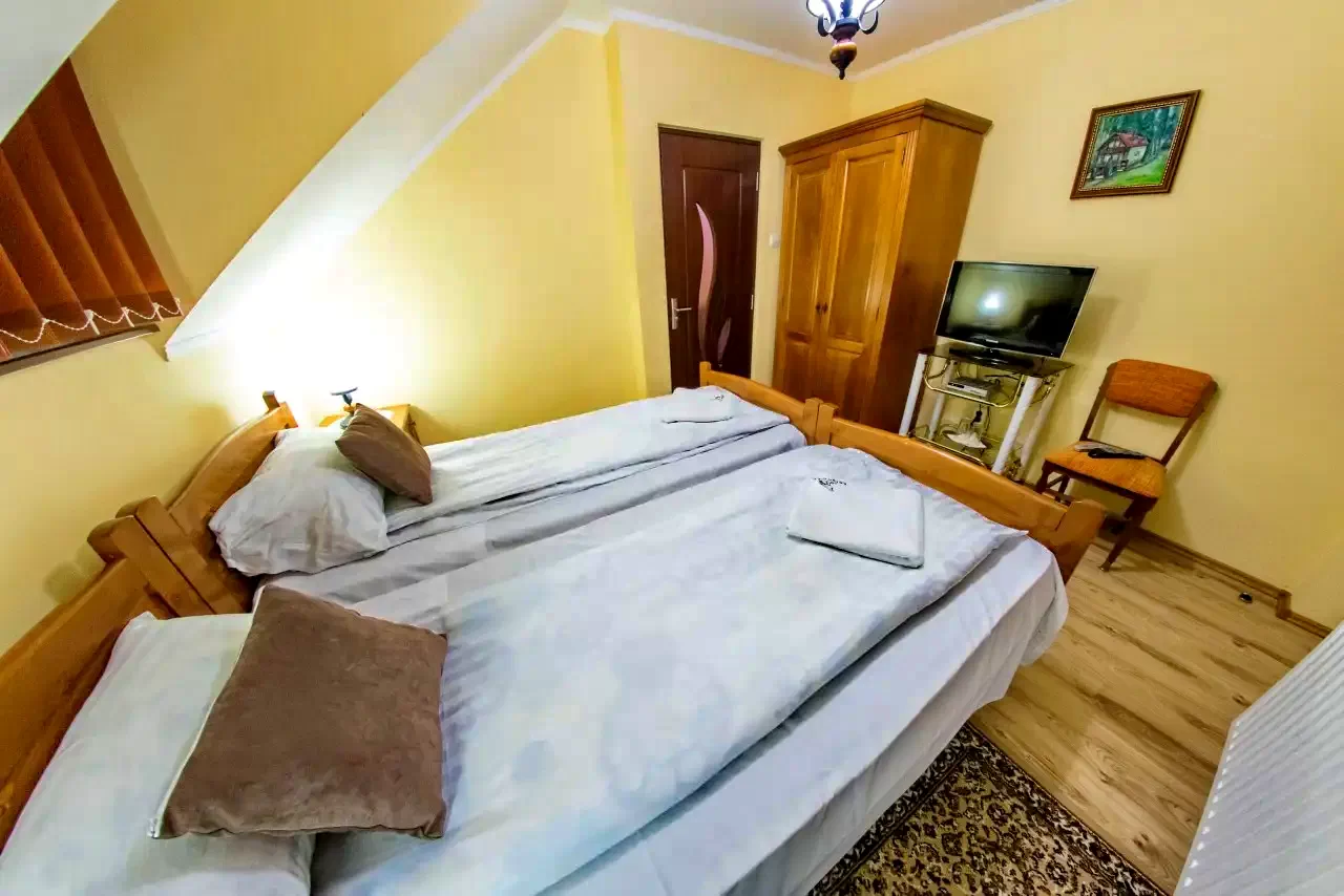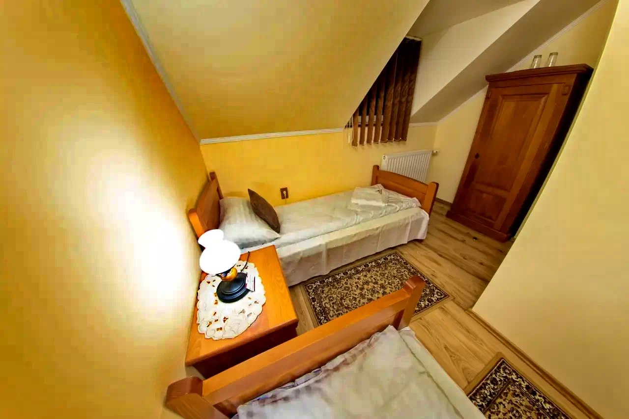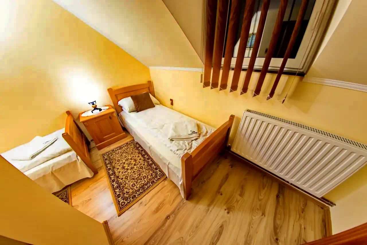 - 3 db kétágyas szoba (a földszinti átjáros, az emeleten egy kisebb és egy nagyobb szoba);