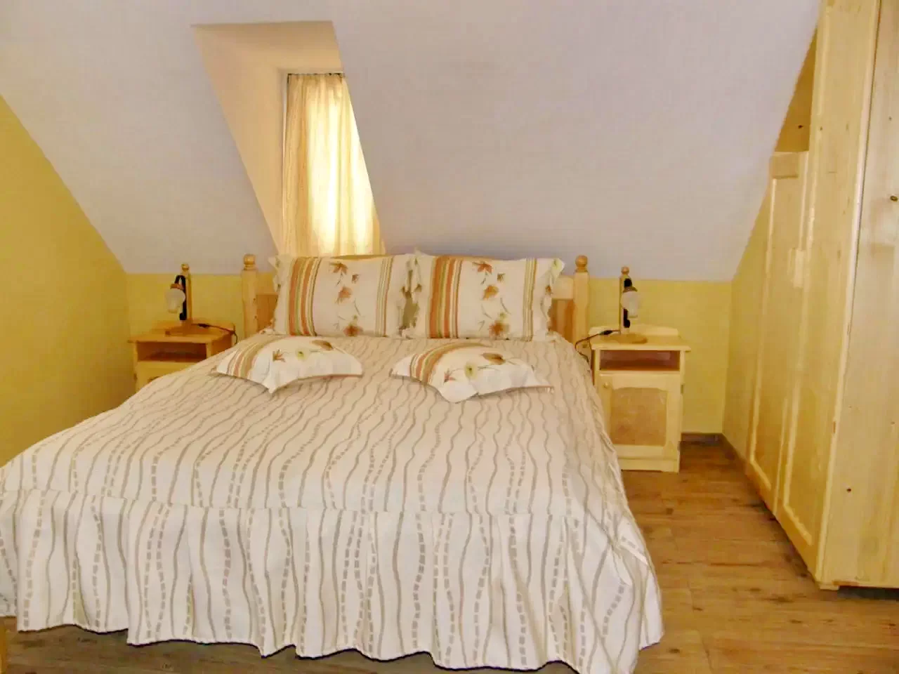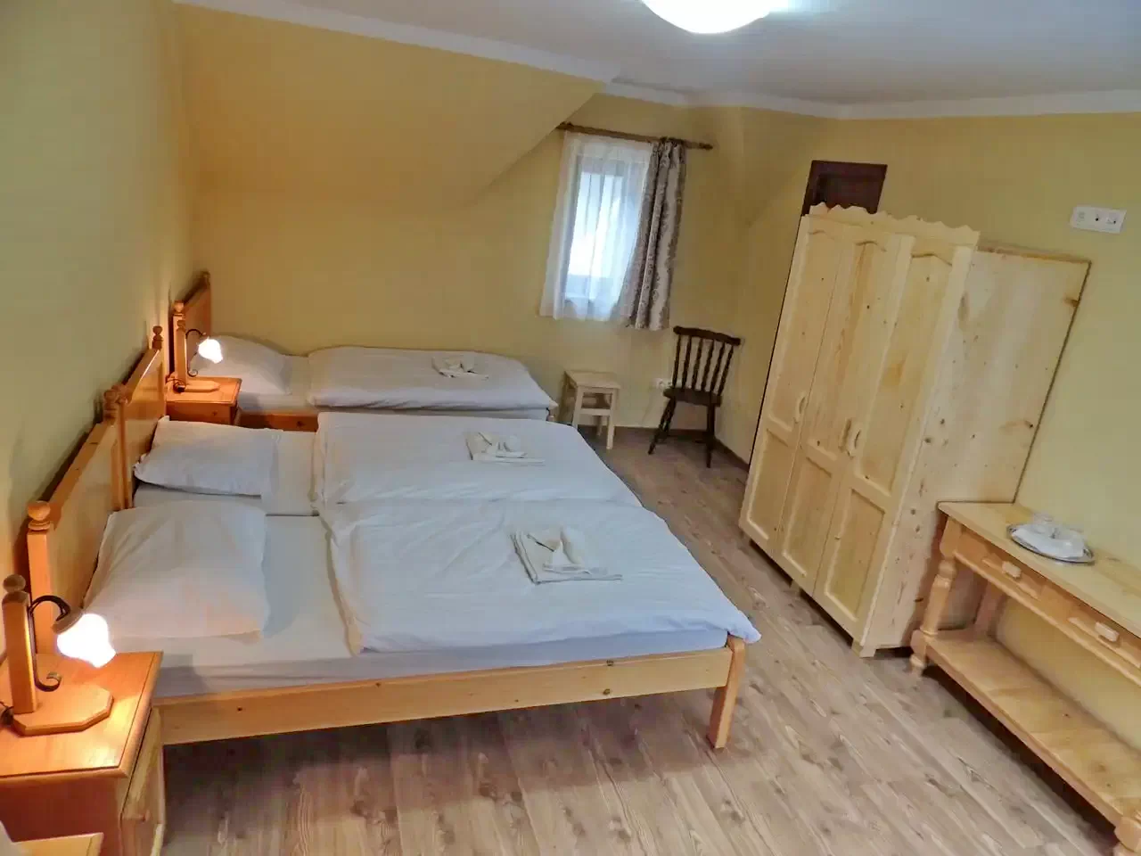 - A fenyőfából készült bútorok, ortopéd matracok és saját fürdőszobák biztosítják a vendégek maximális kényelmét.
