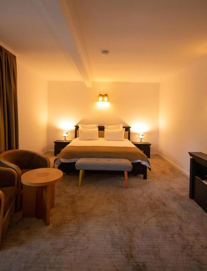 - Kétszemélyes szobák: 12 db, mindegyik franciaággyal, erkéllyel és modern felszereltséggel