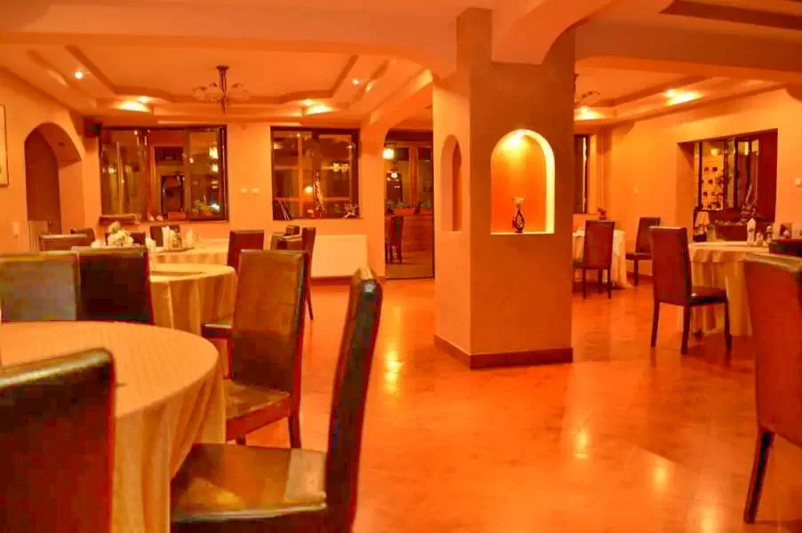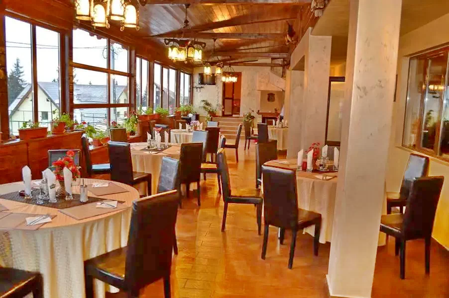 A panzió 150 férőhelyes két szalonból álló étterme hagyományos ételekkel várja Önöket, a földszinten helyet kapott még egy kávézó - bár helyiség valamint egy nyári terasz is.