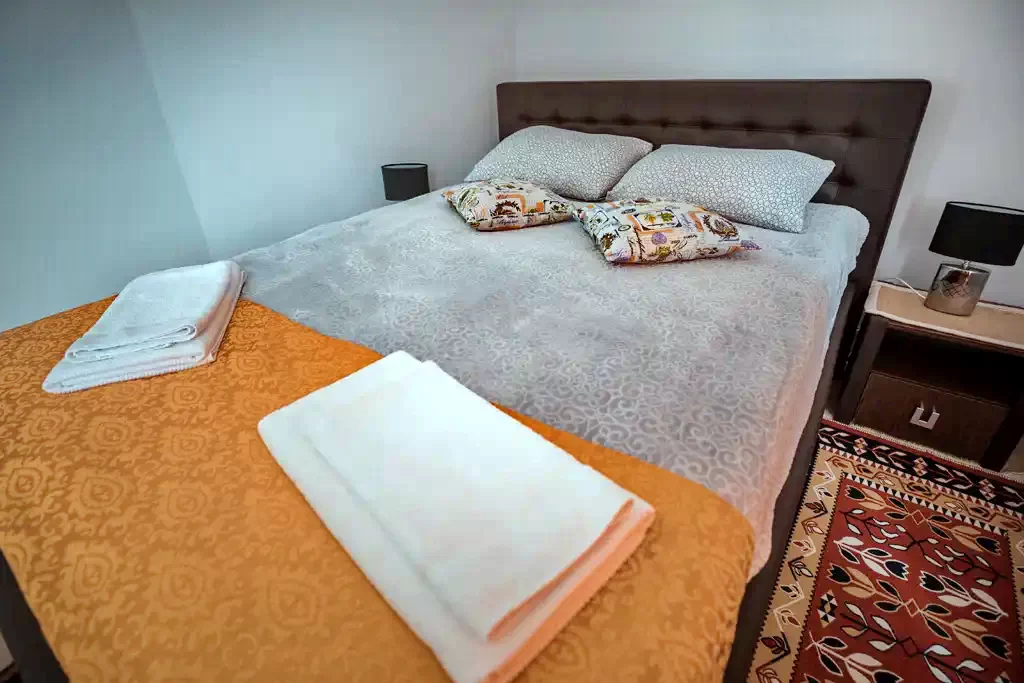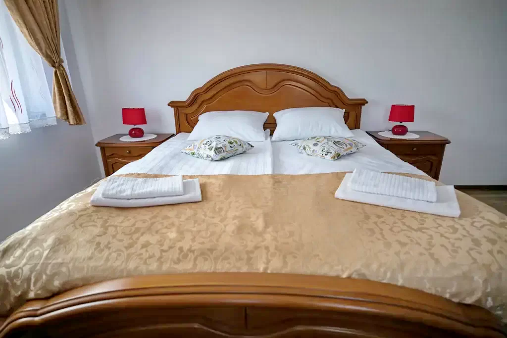 - 1 db 5 fős szoba (kétszemélyes franciaágy + egyszemélyes ágy + emeletes ágy)