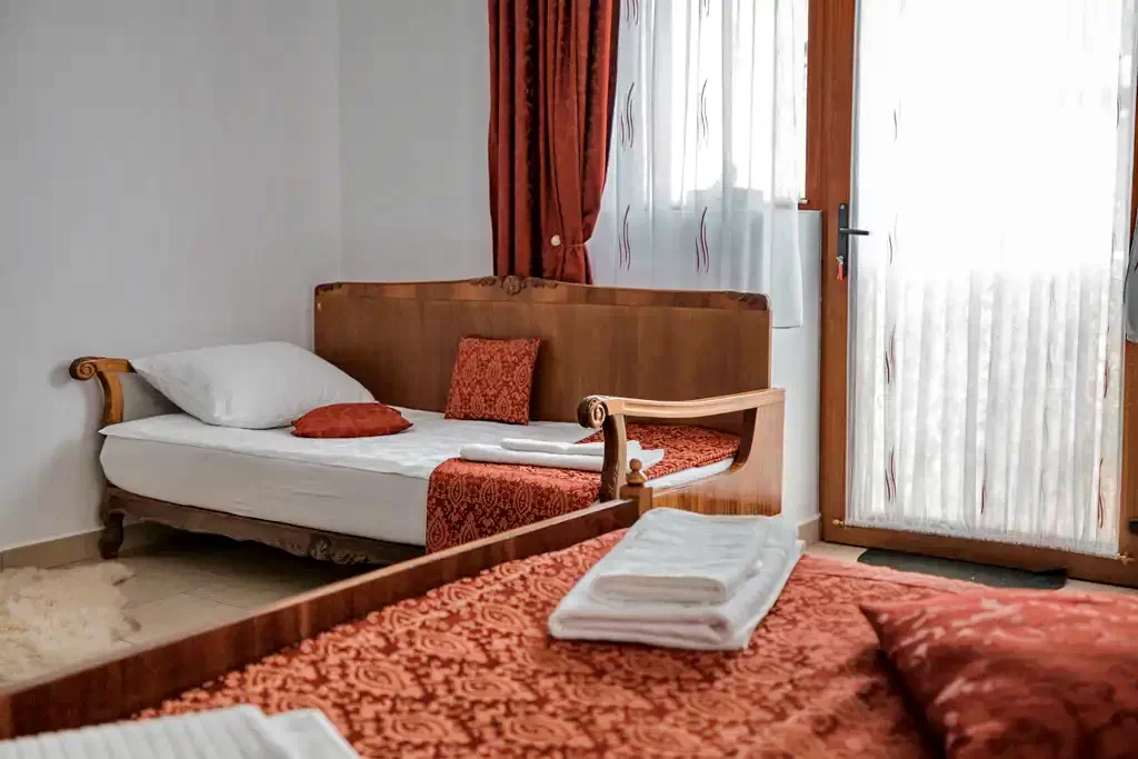 - A szobák tágasak, világosak, és kérésre pótággyal bővíthetők. Mindegyik közvetlen kijárattal rendelkezik a teraszra, ahol a vendégek kényelmesen pihenhetnek és élvezhetik a természet közelségét.
