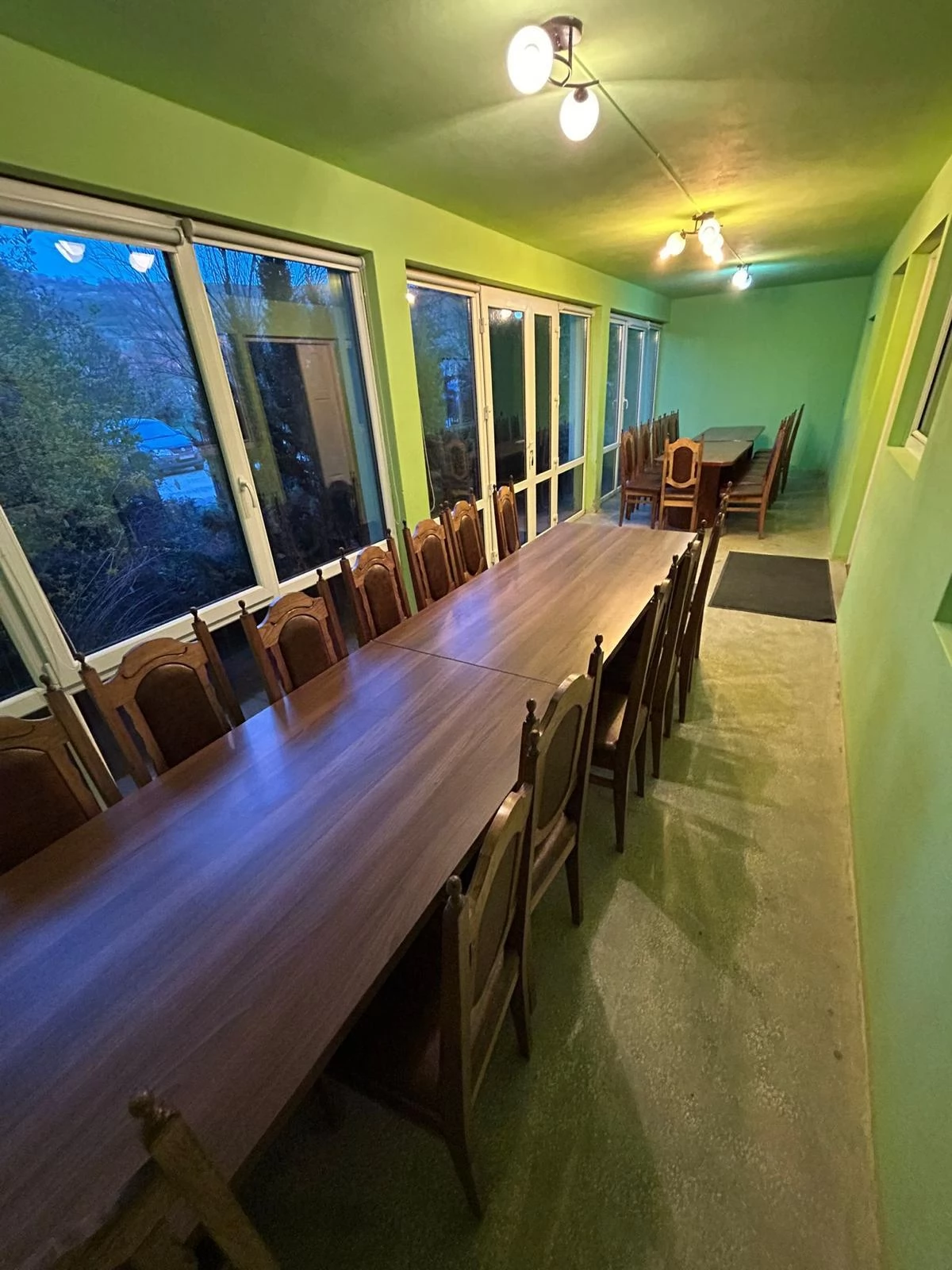 - Az ebédlő 32 fő befogadására alkalmas, nagy asztallal, amely lehetővé teszi a közös étkezéseket.