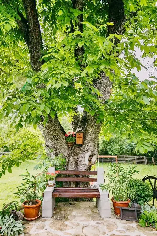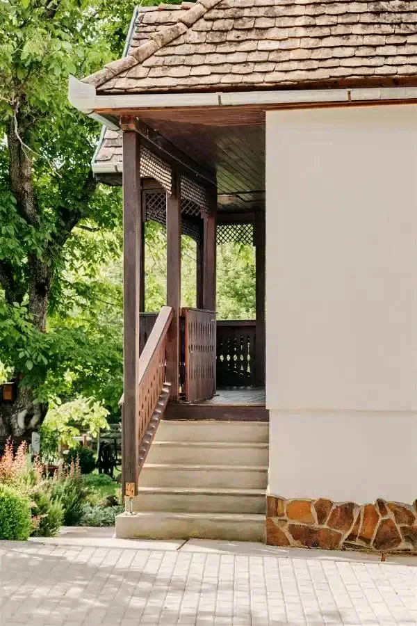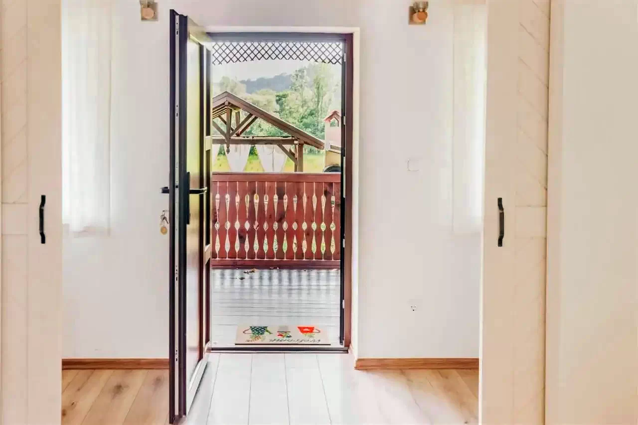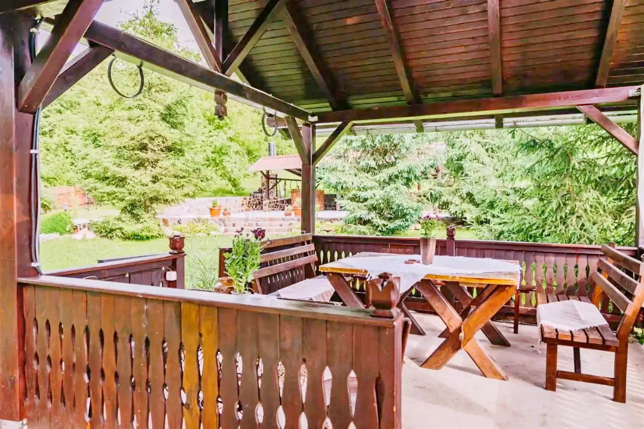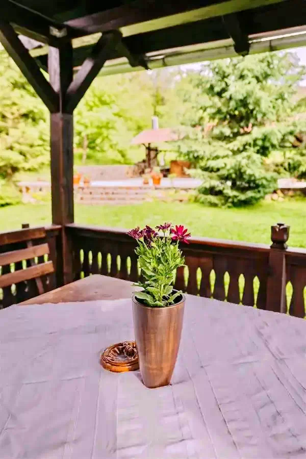 - Az emeleti szobákhoz tartozó terasz gyönyörű kilátást nyújt a környező erdőkre és a patakra, tökéletes helyszínt kínálva a reggeli kávézáshoz vagy esti beszélgetésekhez.