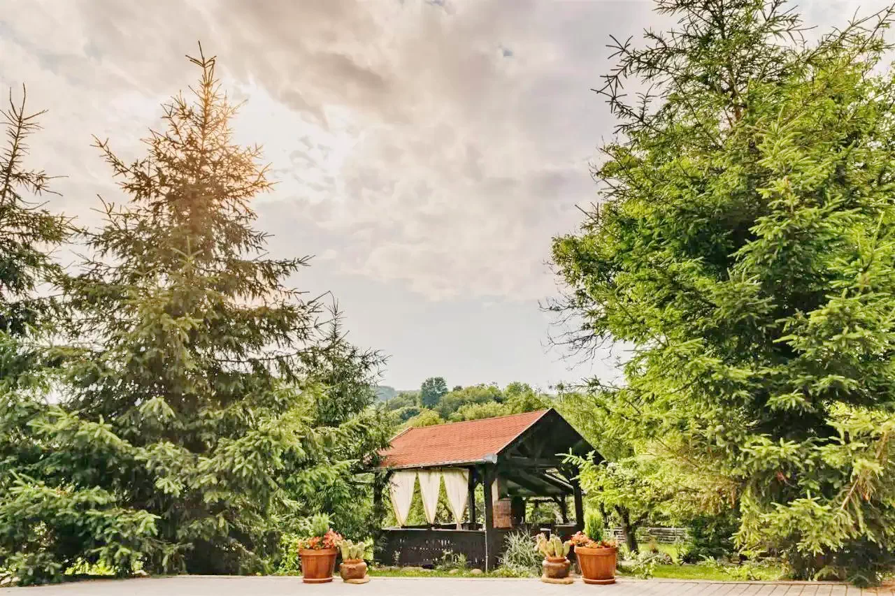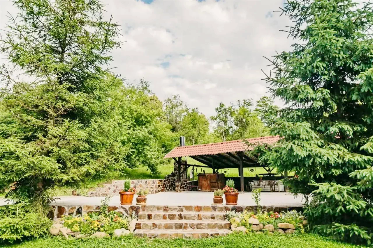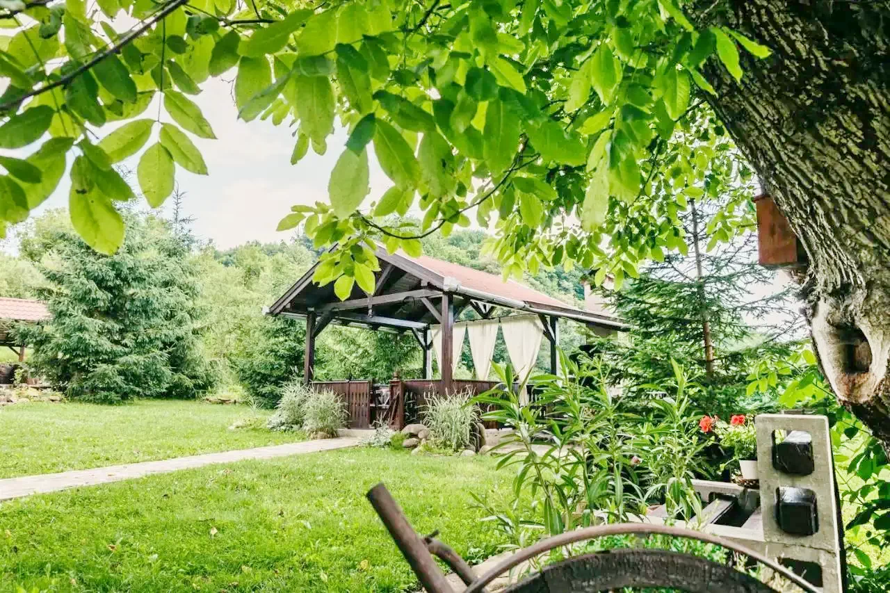 Kerti programok: a filagória, a kemence és a grillezési lehetőség ideális baráti vagy családi összejövetelekhez, miközben a kert végében csordogáló patak különleges hangulatot teremt.