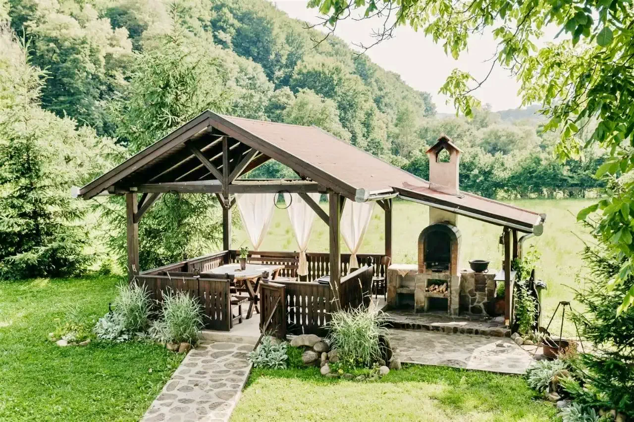 Filagória és kerti bútorok szabadtéri pihenéshez.