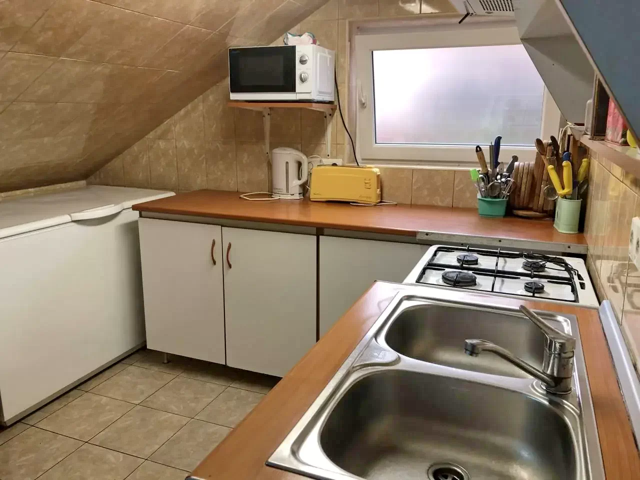 - A tágas, közös étkezőben és konyhában lehetőség nyílik a közös étkezések lebonyolítására.