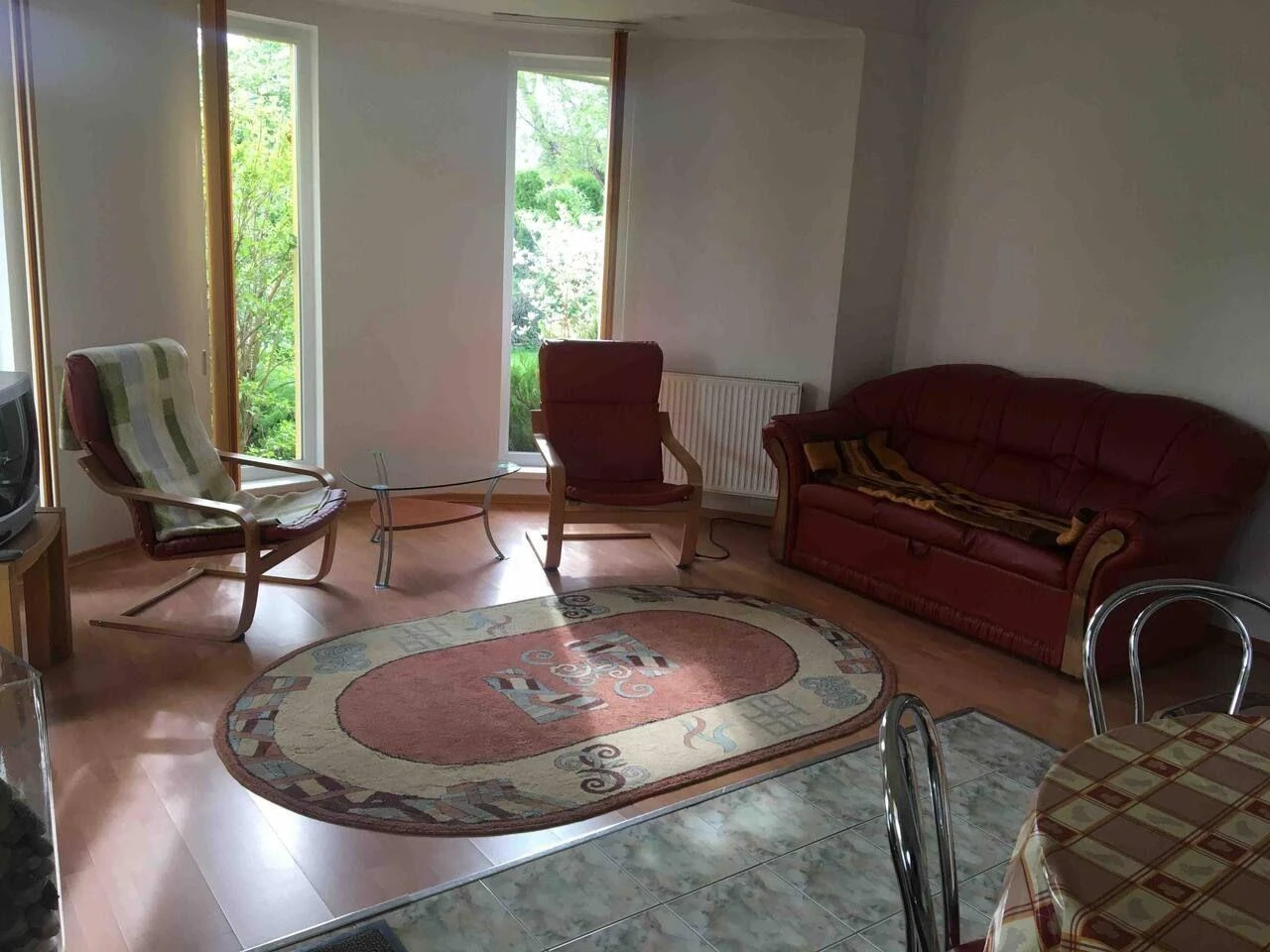- Nappali-étkező: kényelmes 2 személyes kihúzható kanapéval