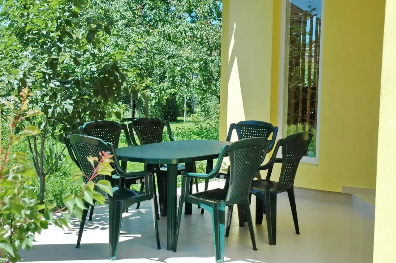 - Az udvaron grillezési és bográcsozási lehetőség áll rendelkezésre, valamint kerti bútorok a szabadtéri étkezésekhez és közös programokhoz.