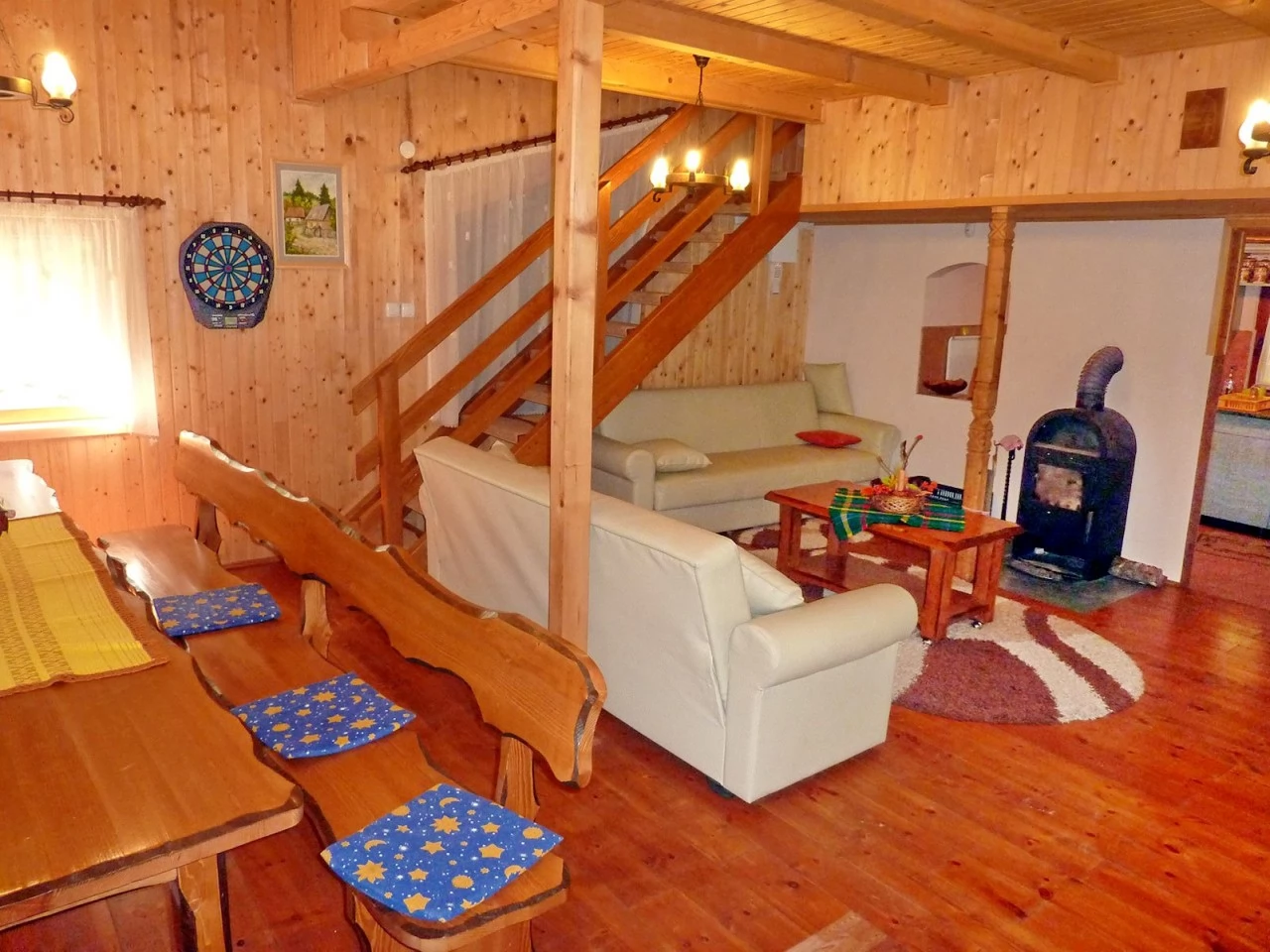 Az emeleten két franciaágyas szoba található. Szükség esetén a nyitott előtérben 2 főre pótágyat biztosítunk. (Összesen 4+(2) fő!)