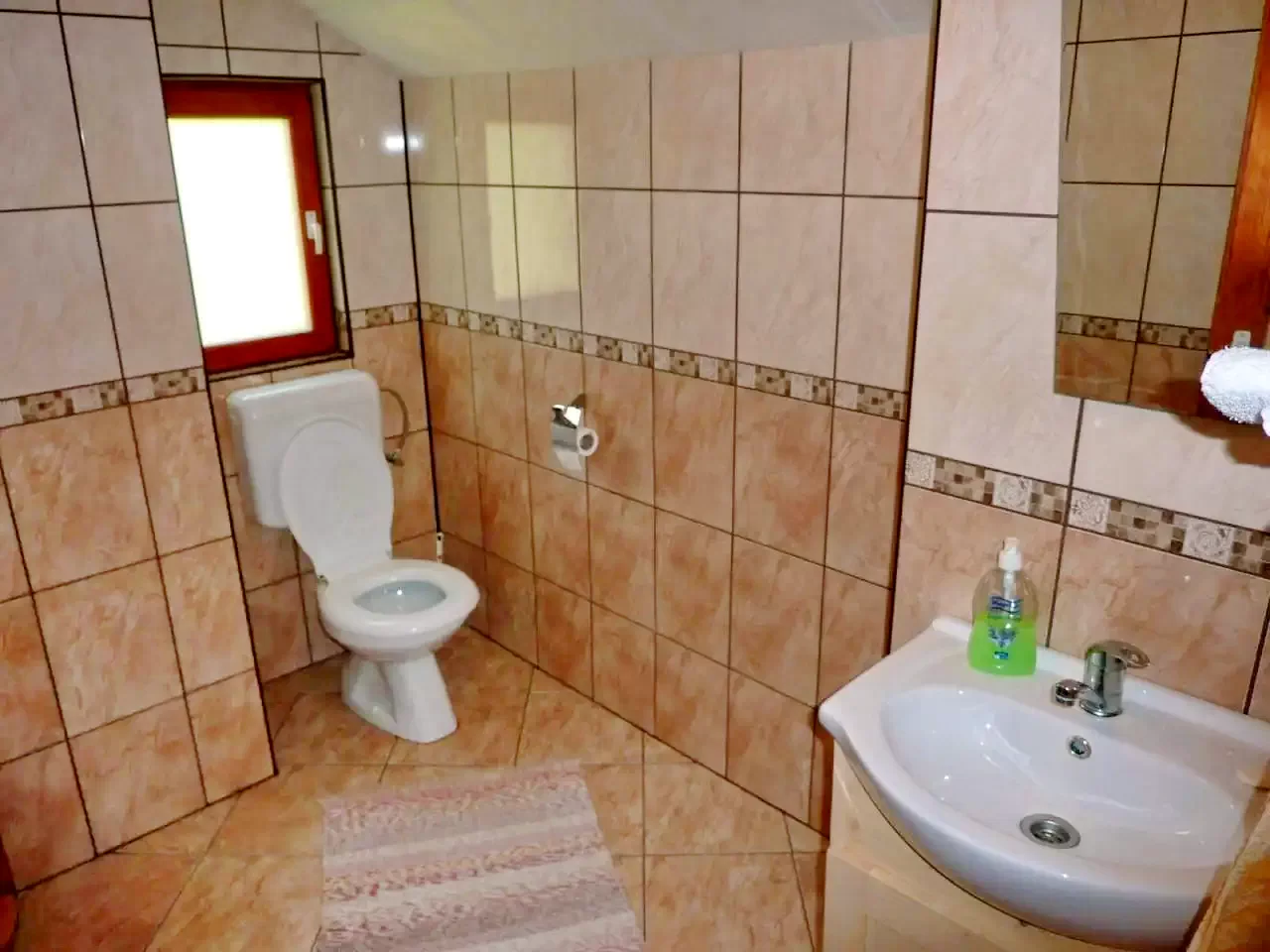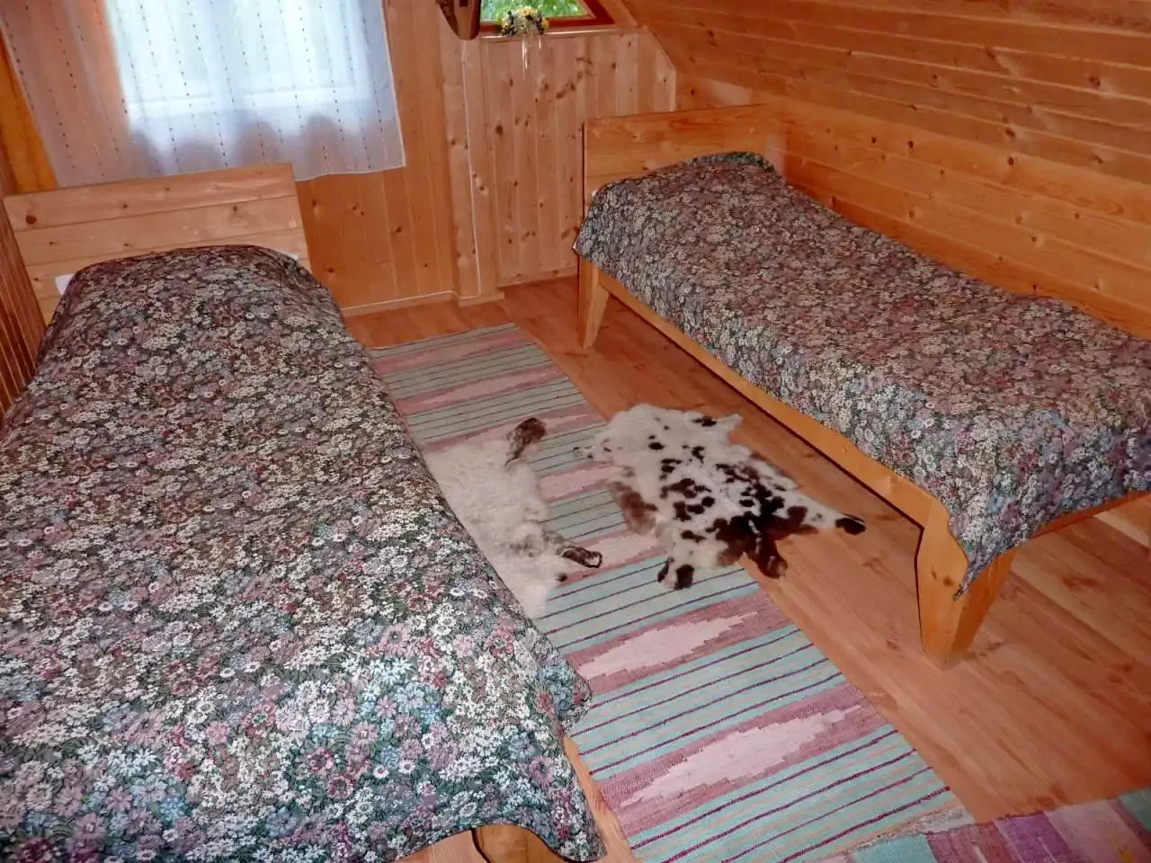 - Az emeletre egy külső lépcsőn keresztül lehet feljutni. Itt egy nappali, két szoba és egy mellékhelyiség kapott helyet. Az egyik szobában két egyszemélyes ágy, a másikban pedig három egyszemélyes ágy található.