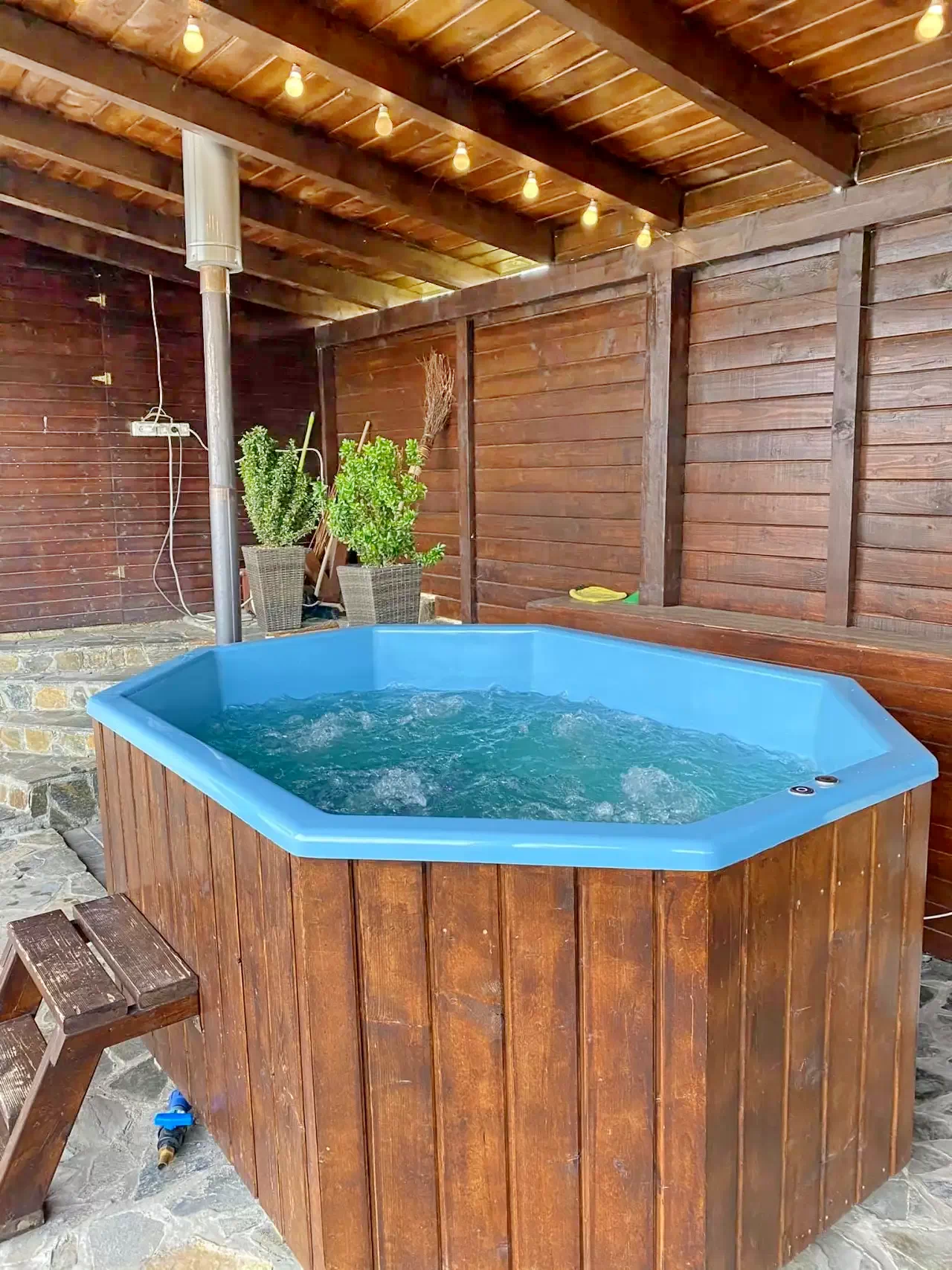 - A kertben wellness szolgáltatások állnak rendelkezésre: meleg vizes dézsa és pezsgőfürdő található a szabadban, nyugodt és intim környezetben.
