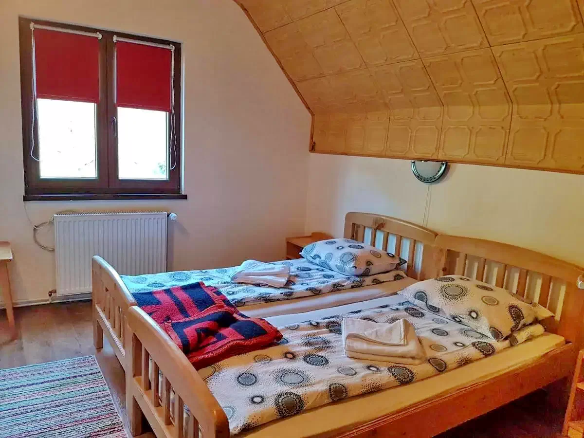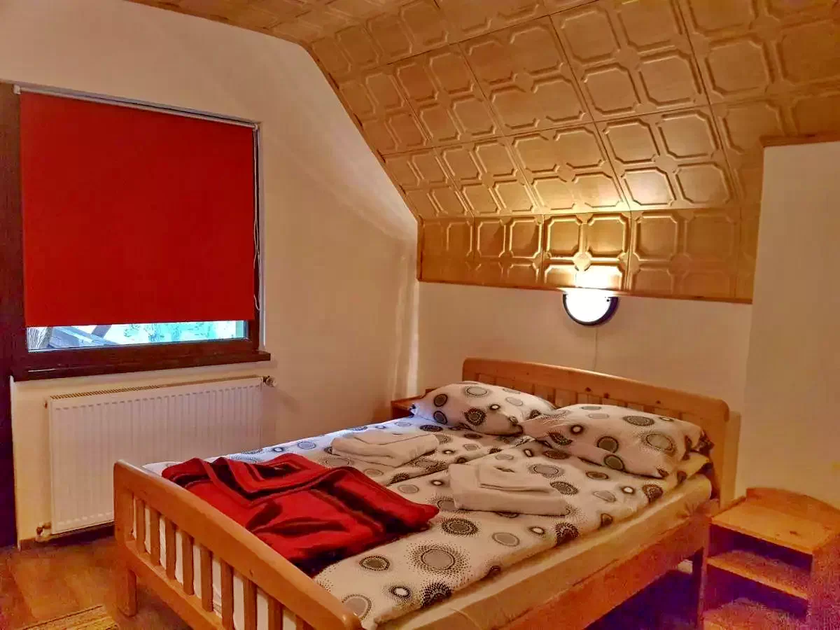Földszint: 1 kétszemélyes szoba, nappali lehúzható kanapéval (2 gyermek vagy 1 felnőtt), konyha, étkező, fürdőszoba