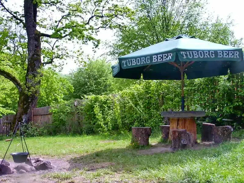 A haz erdőszélen egy 900 m2-es füvesített telken talalható csendes és hangulatos környezetben. A főúttól 2 kilométerre fekszik, és egy hengerelt kövezett úton közelíthető meg.