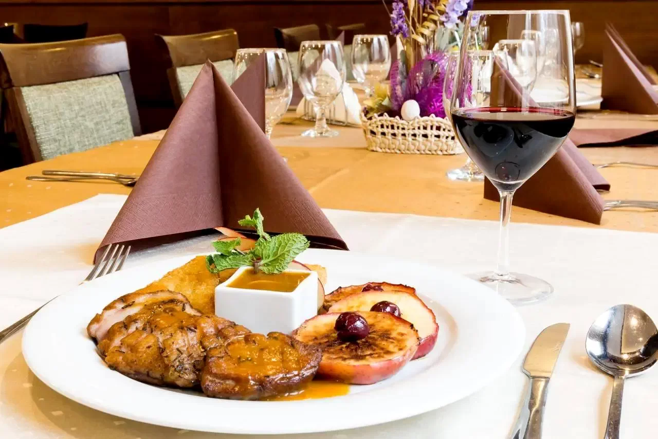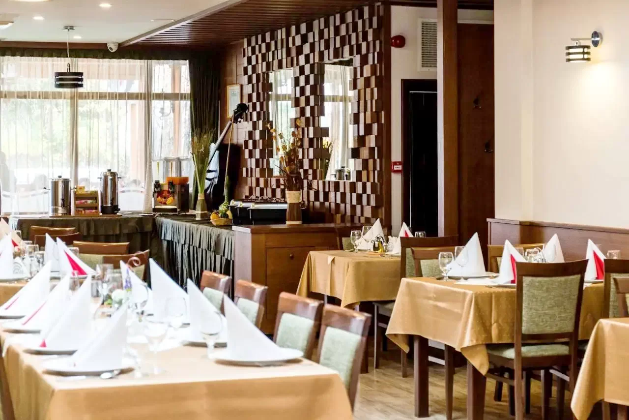 Három csillagos pompás 70 fős Étterme hagyományos román, illetve Sóvídéki, friss és finom ételkülölegességeket kínál.