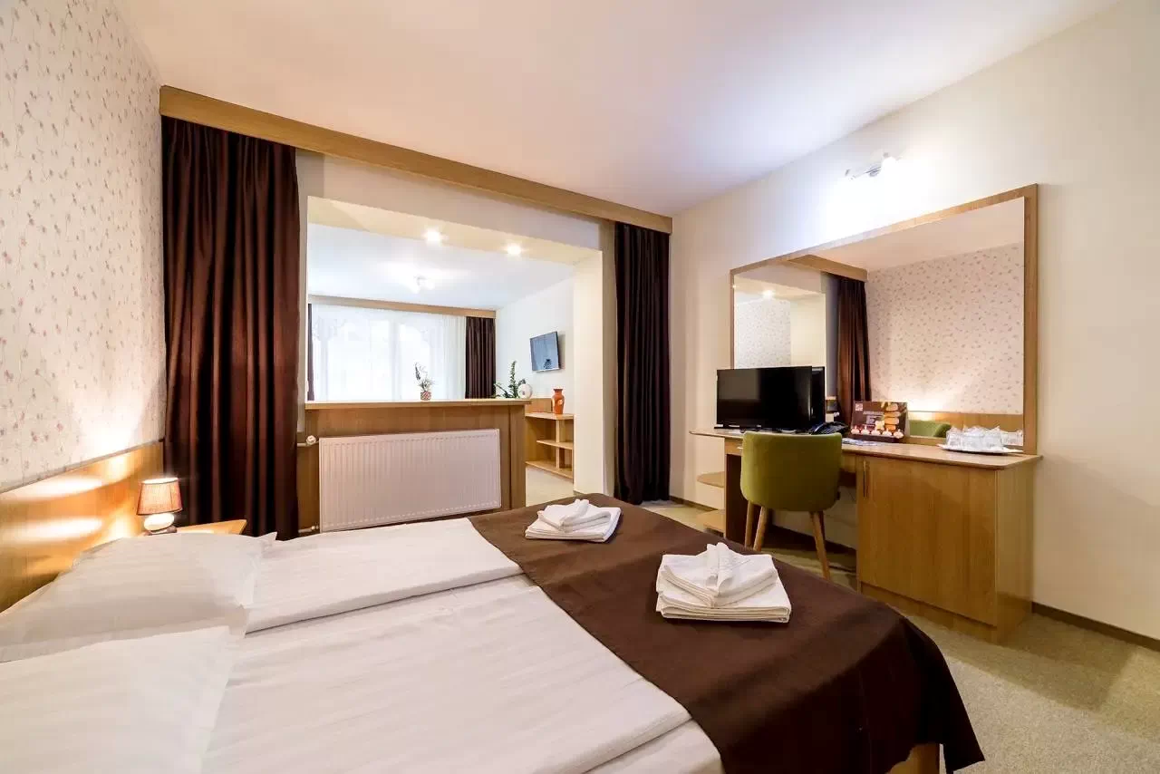 - 26 db 2 fős szoba (franciaágyas vagy 2 ágyas), saját fürdős szoba TV-vel