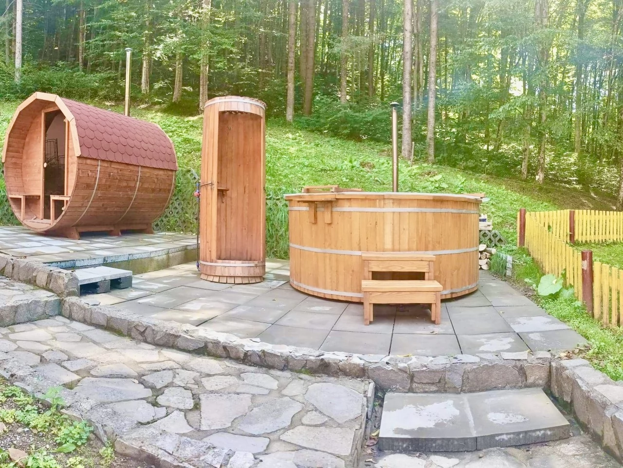 - Wellness szolgáltatások: kültéri szauna és cseberfürdő.