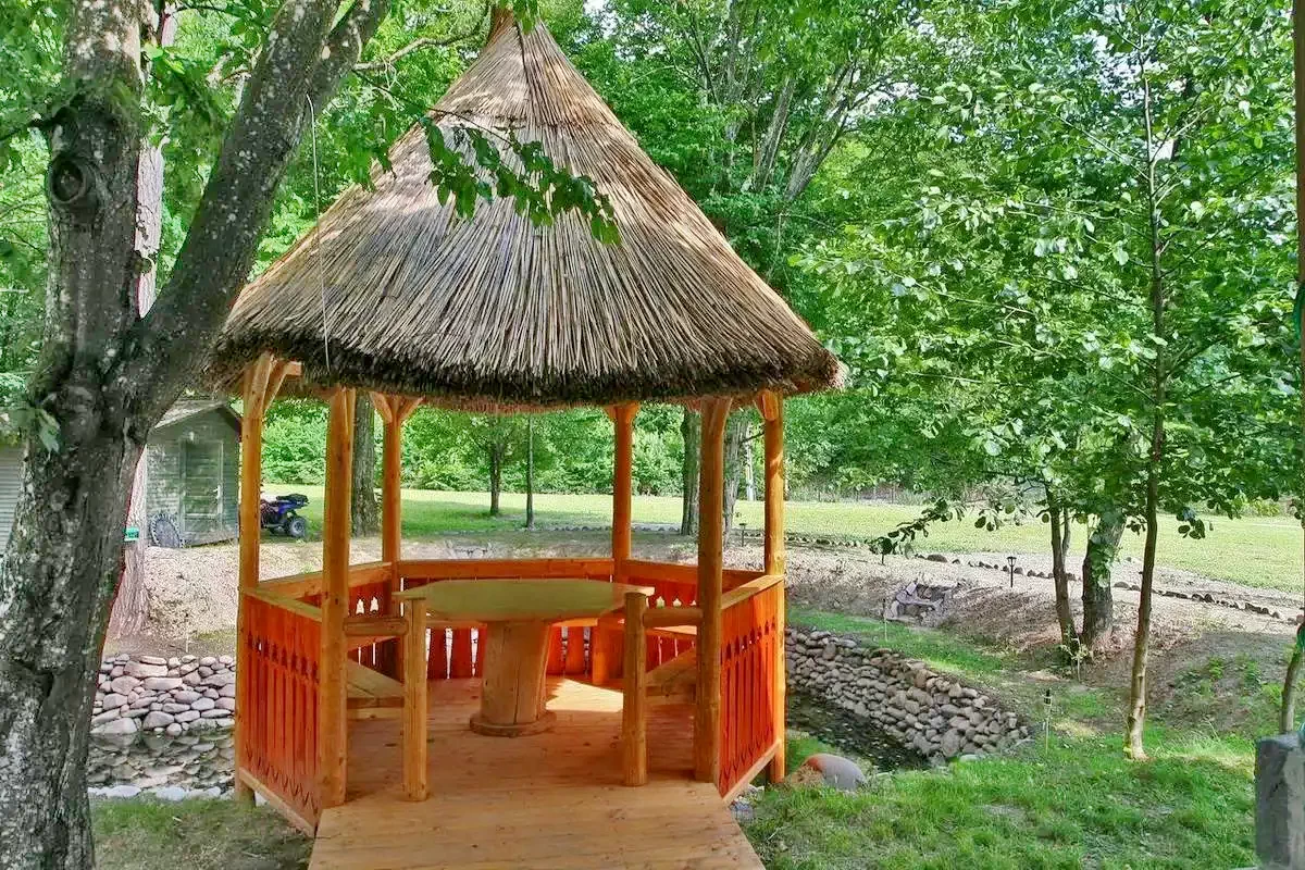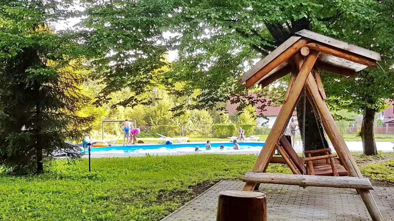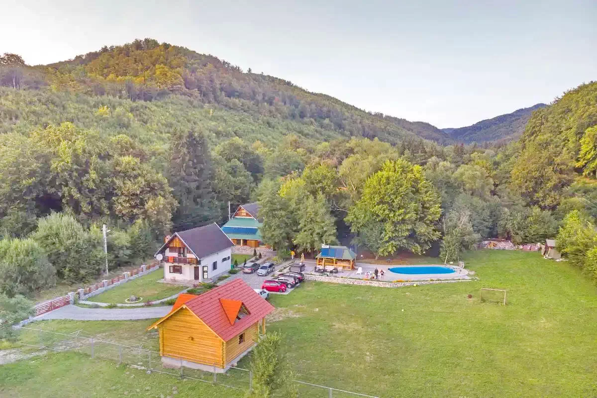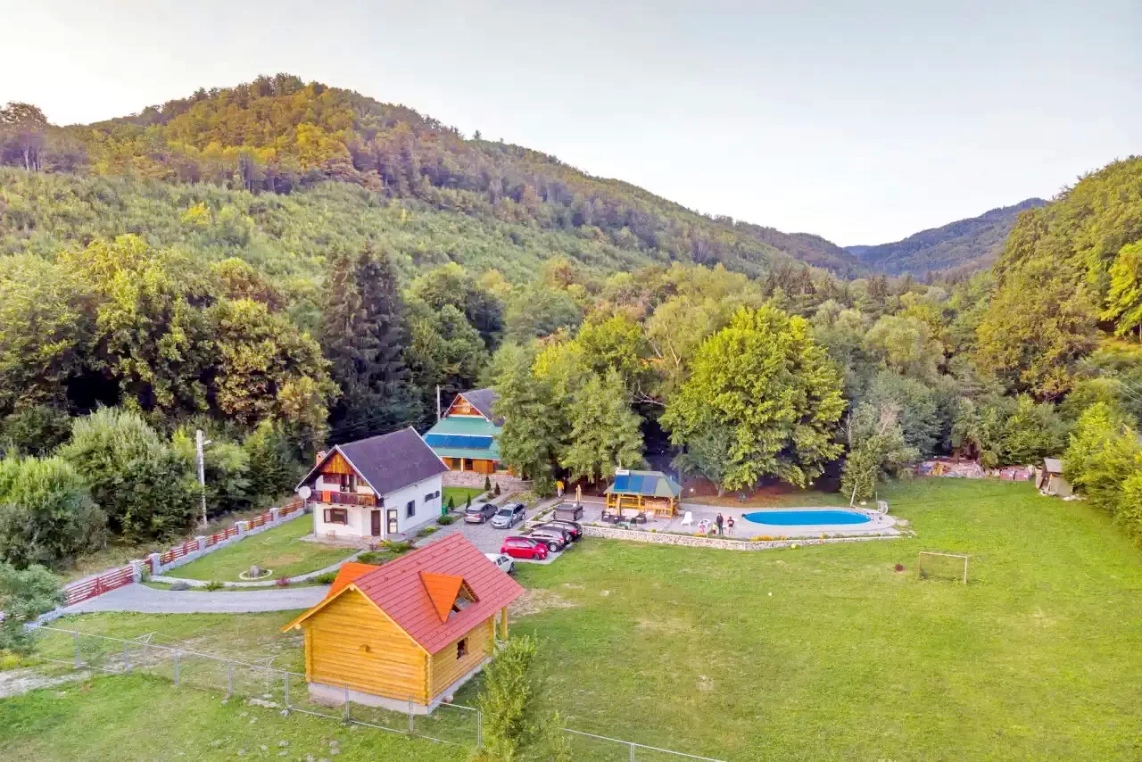 Szállás Szováta Kulcsosház*** | Erdő szélen patak mellett tisztáson, medence, pezsgőfürdő, konyha, WiFi, nappali, filagória, grill, sportpálya, parkoló | 800m Medve-tó, 900m Szováta sípálya, 12 km Parajdi Sóbánya