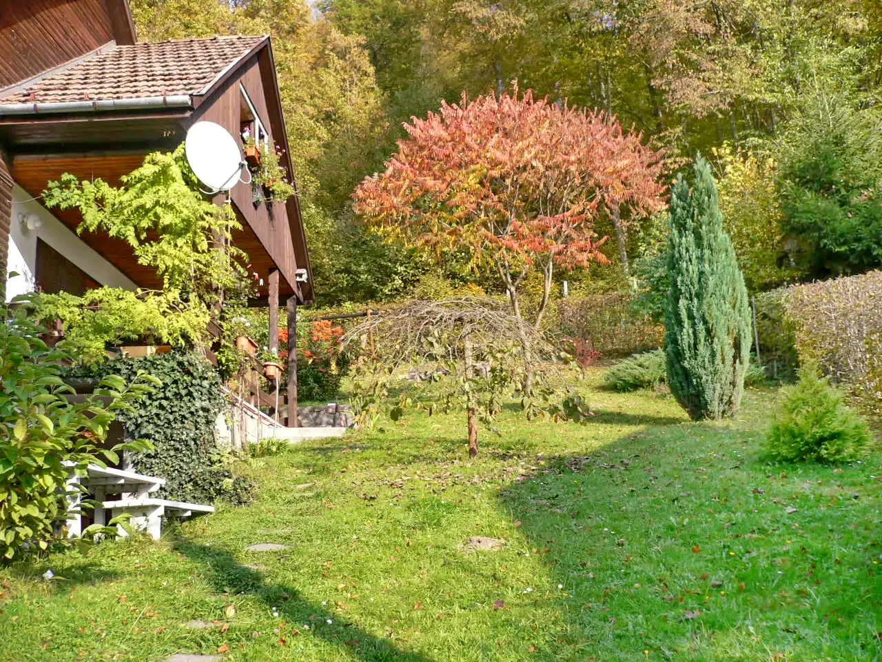 Környezet: 700 m²-es zöldövezet, patakparti fekvés erdő mellett.