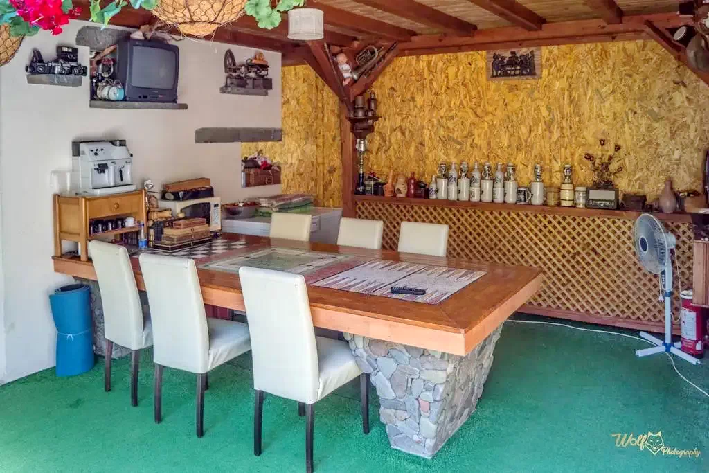 Felszerelt közös vendégkonyhával, étkező-mulató teremmel szolgál.