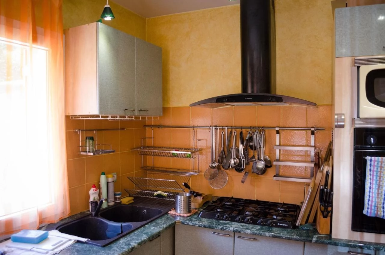 - A konyhában minden szükséges eszköz megtalálható, beleértve a sütőt, hűtőszekrényt, mikrohullámú sütőt, mosogatógépet és kenyérpirítót.