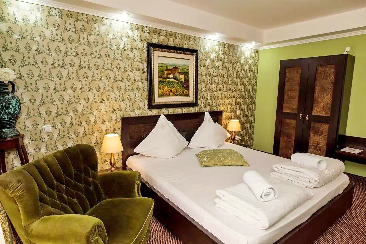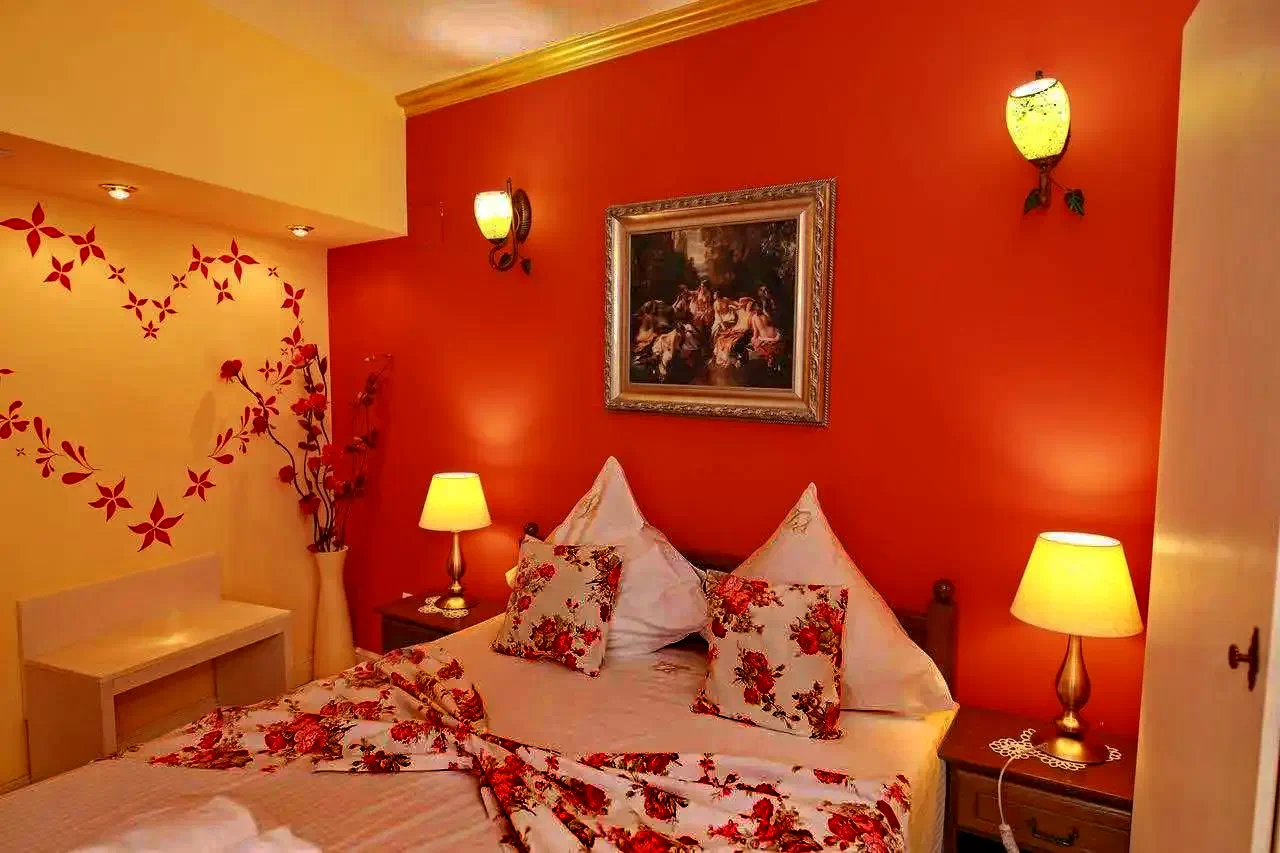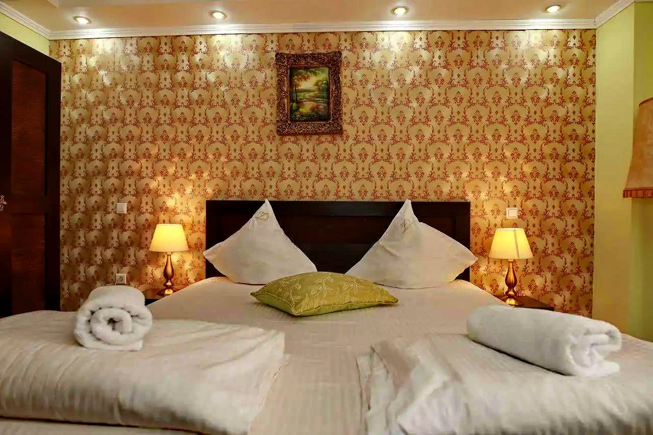 | Standard Kétágyas szoba (franciaágy) | 2 fő | 220 RON | Légkondi, WiFi, LCD TV, saját fürdőszoba, hajszárító | Tematikus szoba (pl. egyiptomi, francia) |