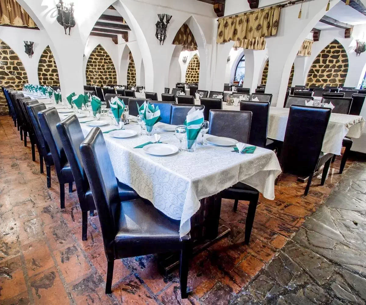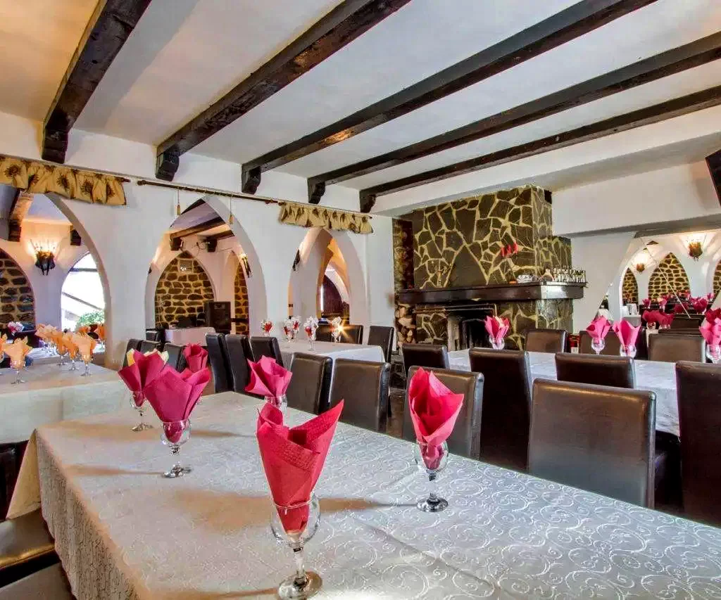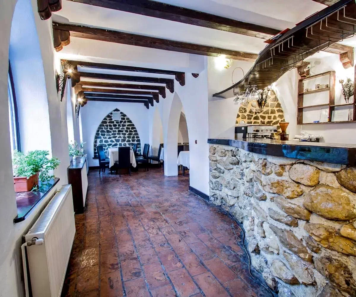 - A helyszínen egy román specialitásokat kínáló étterem elérhető, 90 férőhellyel. A hely rusztikus hangulata biztosítja a hagyományos középkori hangulat megteremtését.