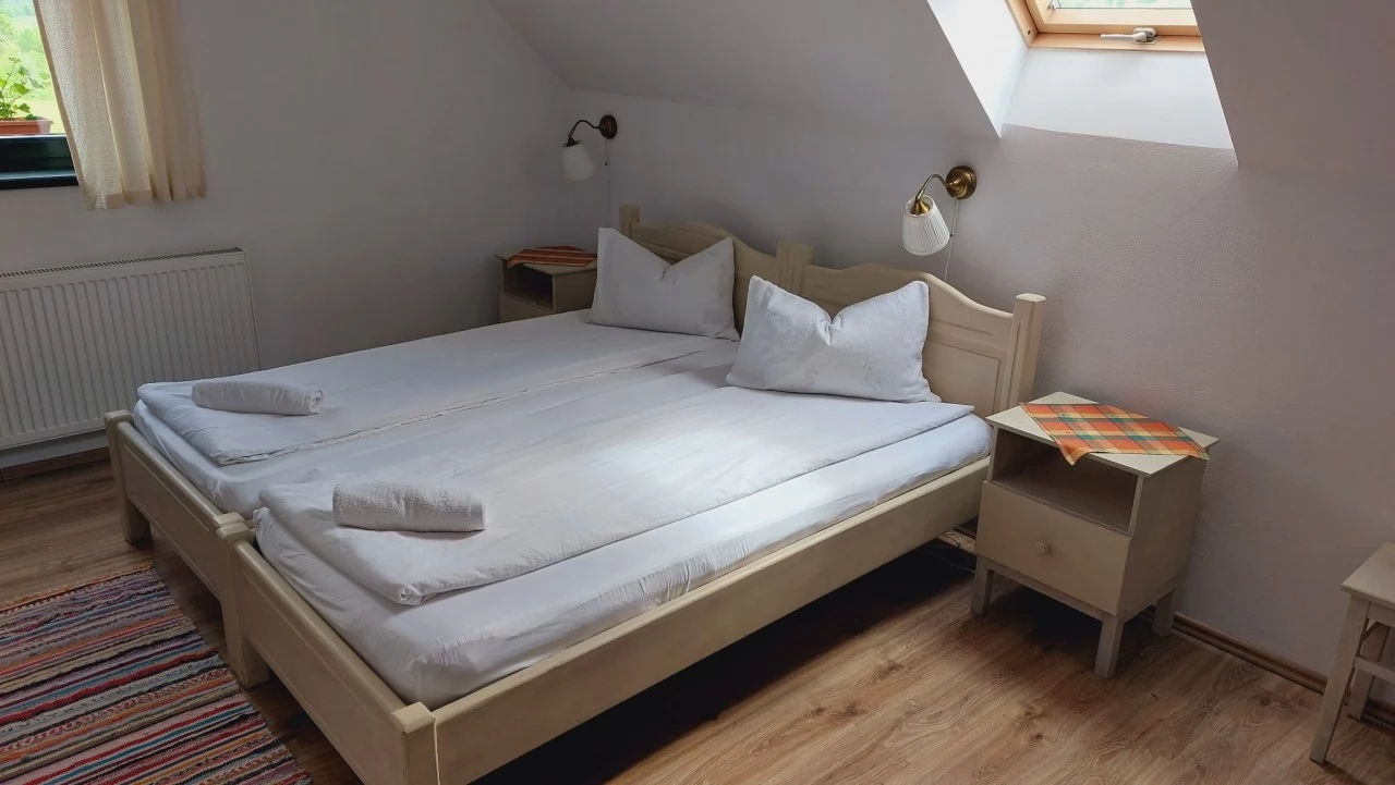 - 1 nagy szoba (30 nm) 1 franciaággyal és egy 2 egyszemélyes ággyal