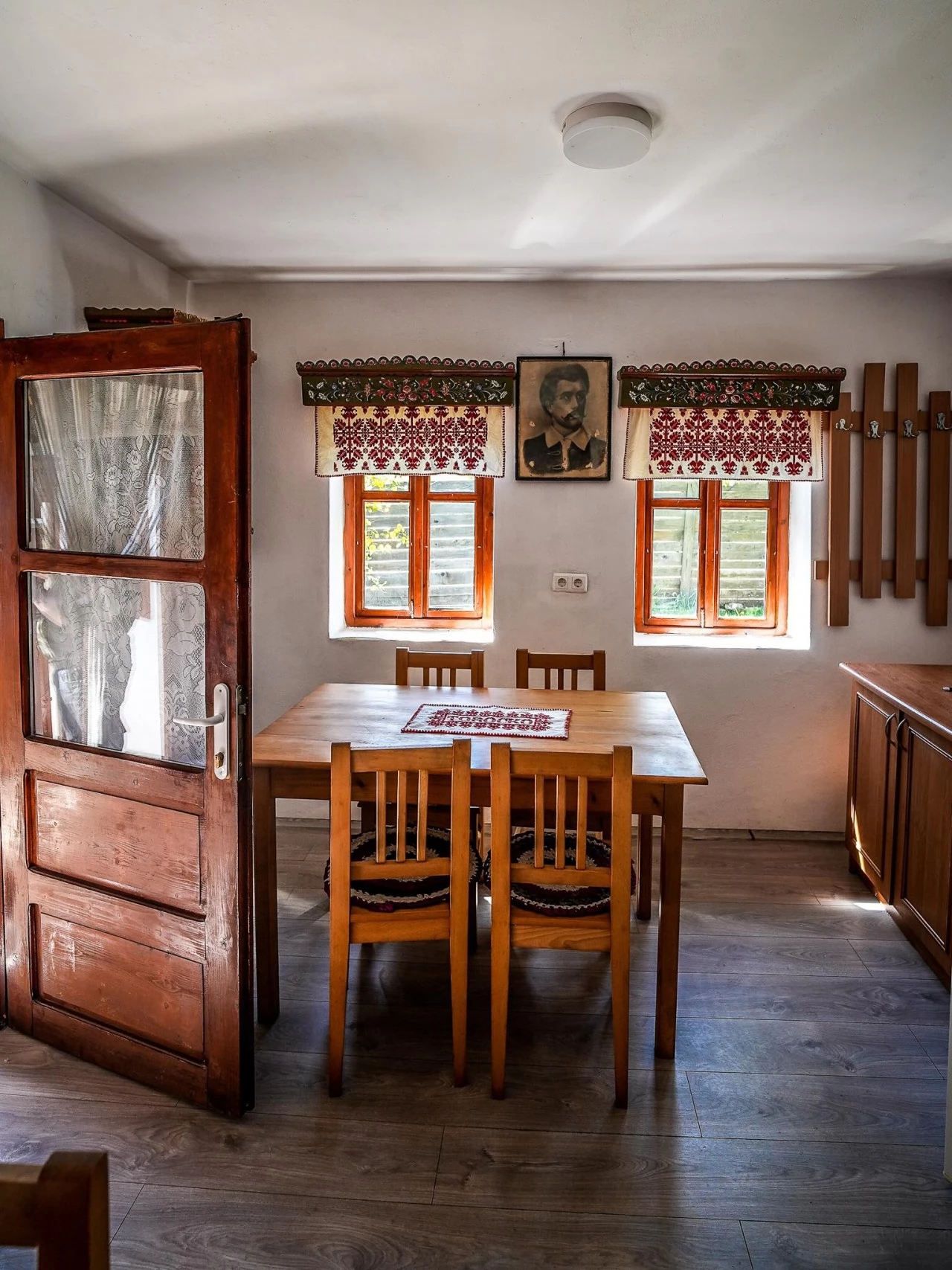 Az udvarról lehet belépni a nagy ebédlőbe.