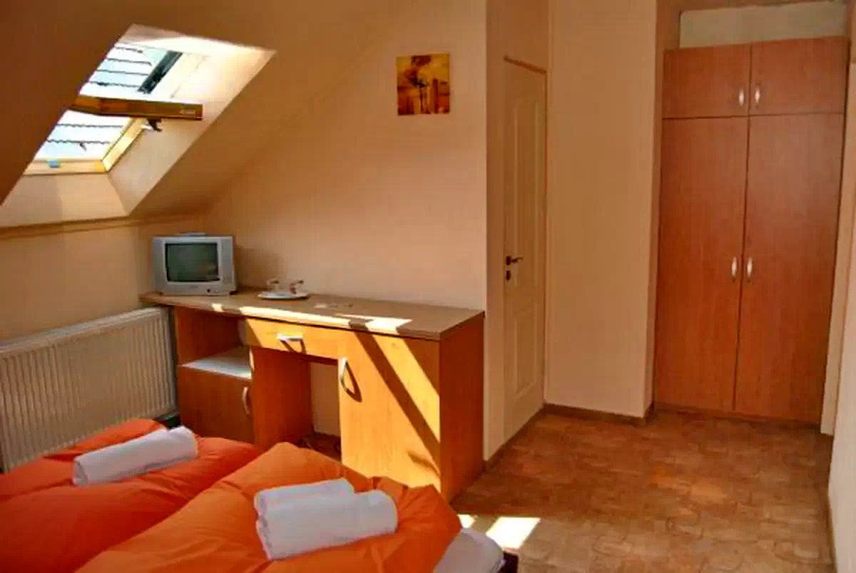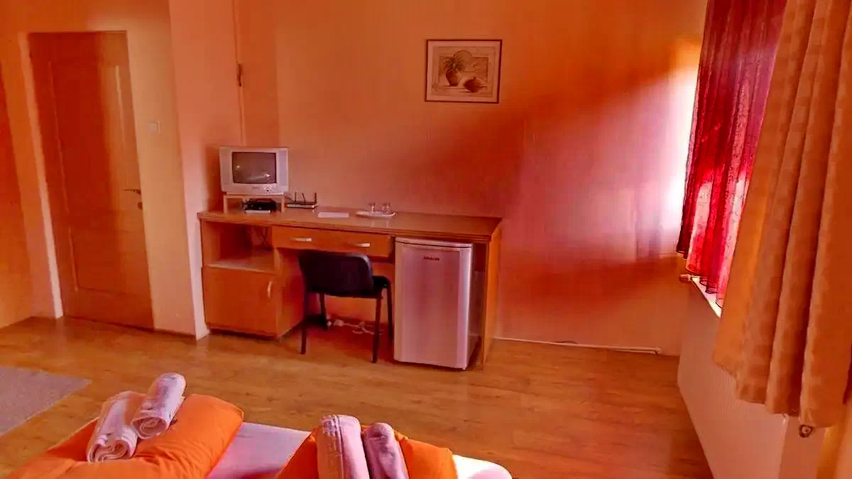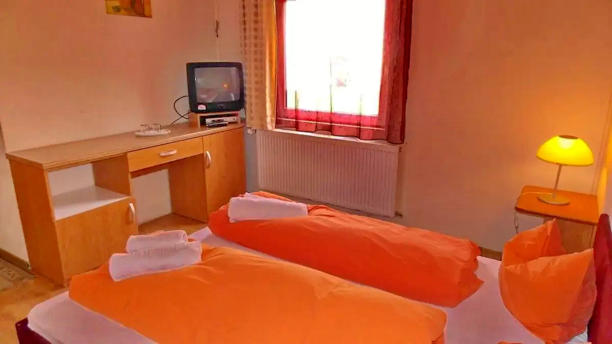- 1. szoba (Economy dupla): 2 fő, saját fürdőszoba, TV, hűtőszekrény, Wi-Fi, központi fűtés.