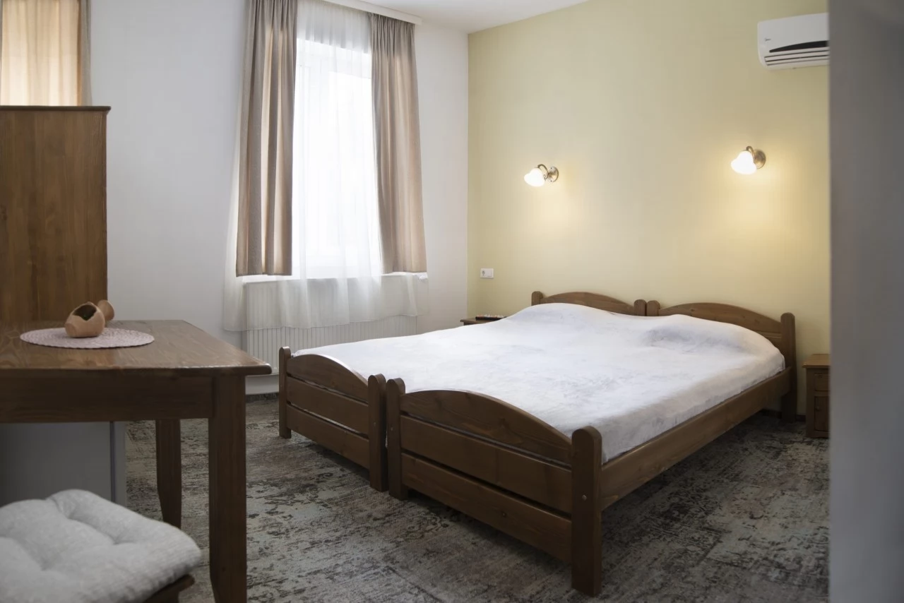 - 1 családi szoba (franciaágy és 2 személyes kanapé)
