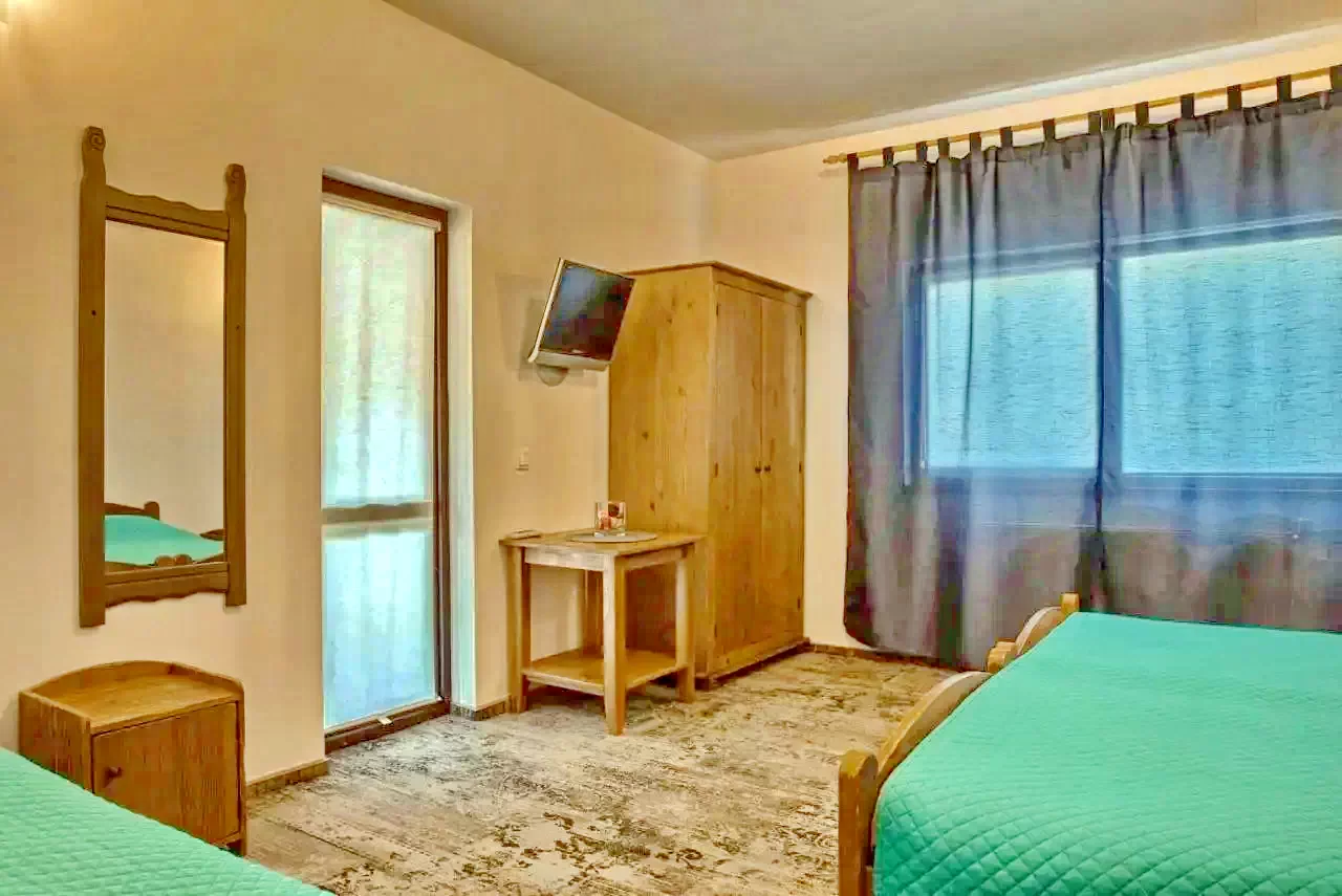 - 2 háromfős szoba (franciaágy + pótágy, illetve 2 különágy + kanapé)
