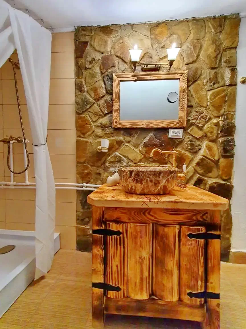 - 3 hálószoba kétszemélyes ággyal az emeleten található (összesen 75 nm), rusztikus stílusban berendezve.