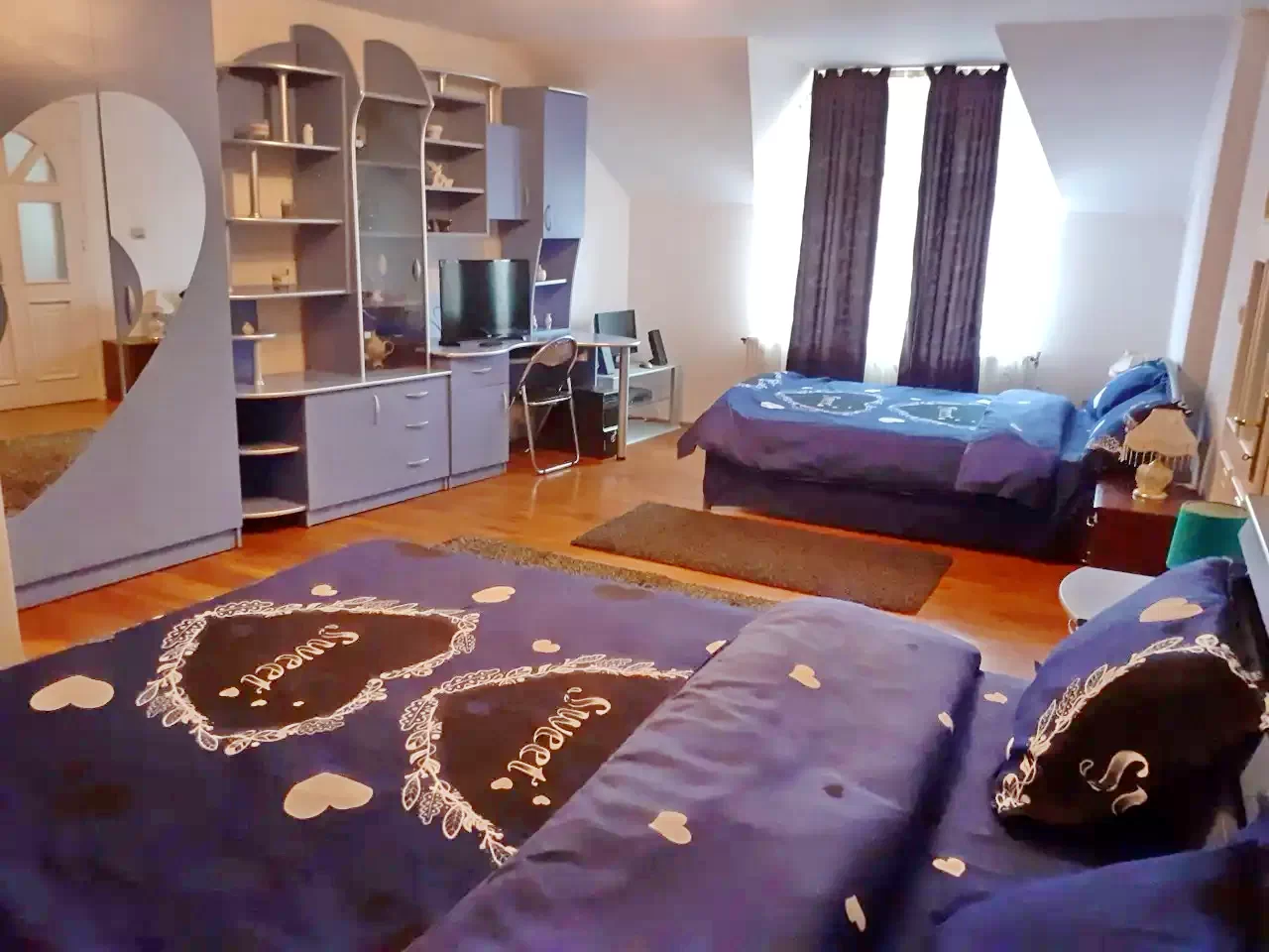 1 szoba franciaággyal és kihúzható kanapéval