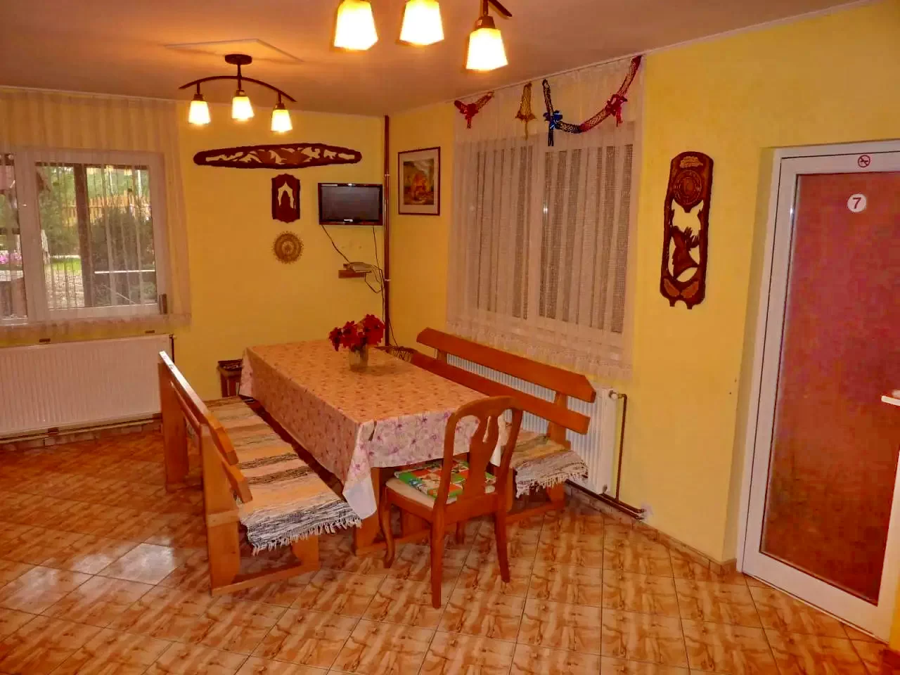 - A nappali-ebédlő tágas étkezőasztala tökéletes családi, baráti vagy céges étkezésekhez.