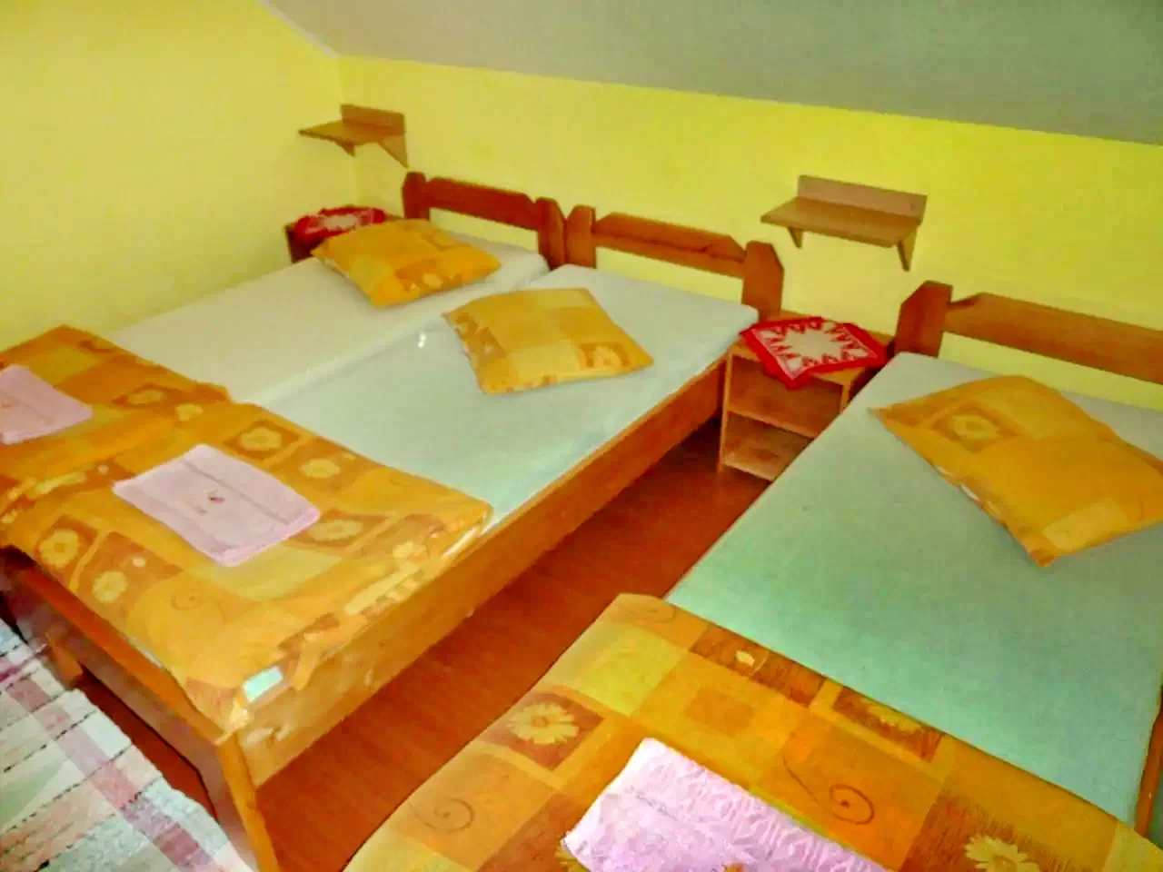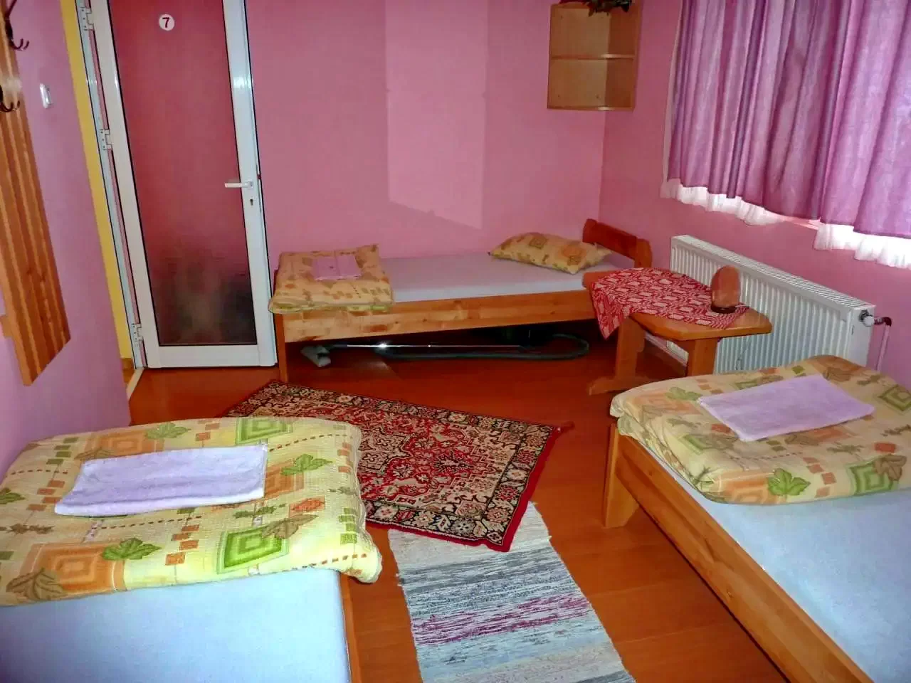3 szoba: 3-3 egyszemélyes ágy (3 fő/szoba, összesen 9 fő) A házban három fürdőszoba található (mindegyik zuhanyzókáddal, WC-vel, kézmosóval), minőségi ágyneművel és kéztörlőkkel. Az udvaron bérelhető 50 személyes rendezvényterem (250 EUR/terem) áll rendelkezésre.