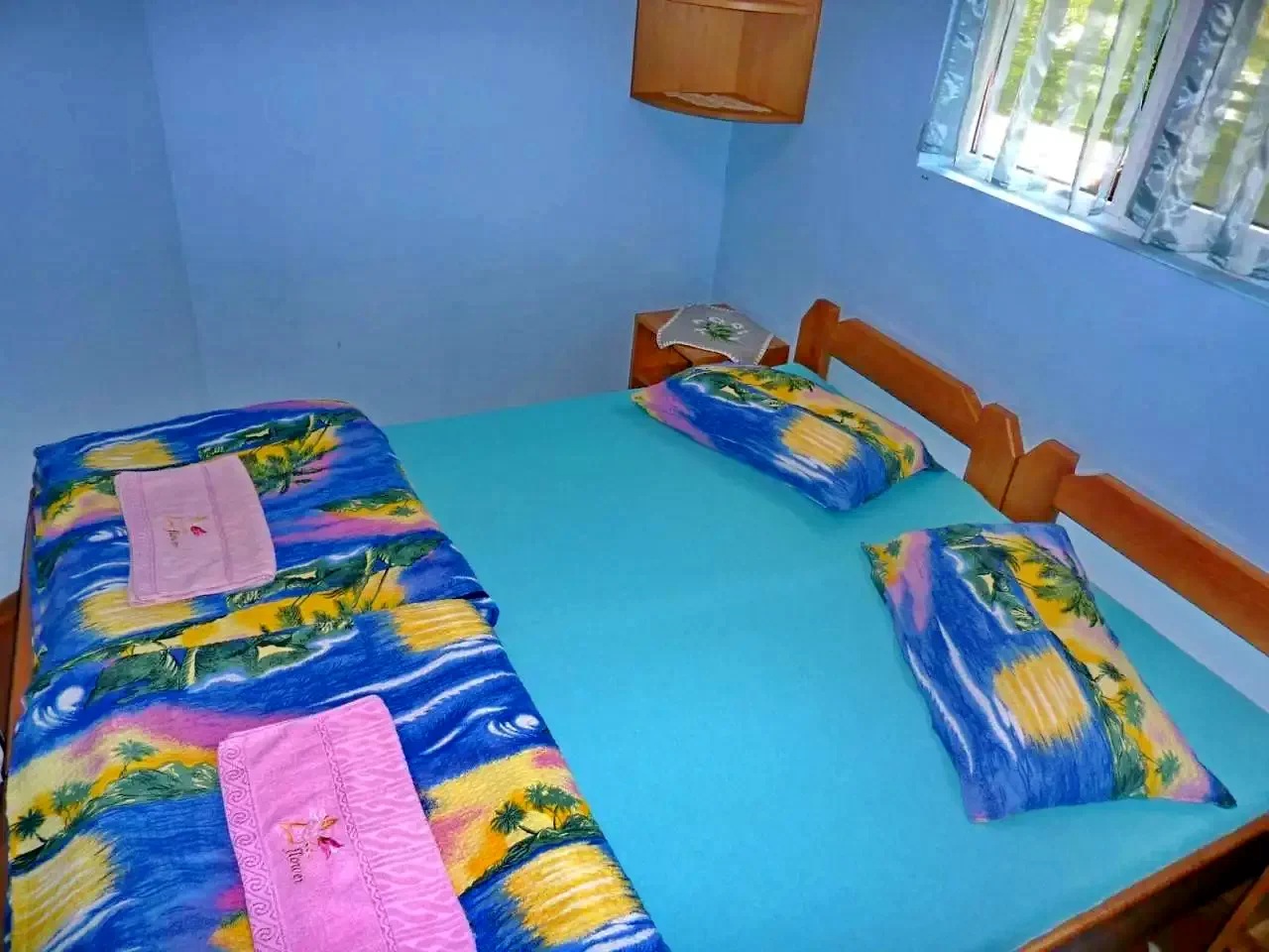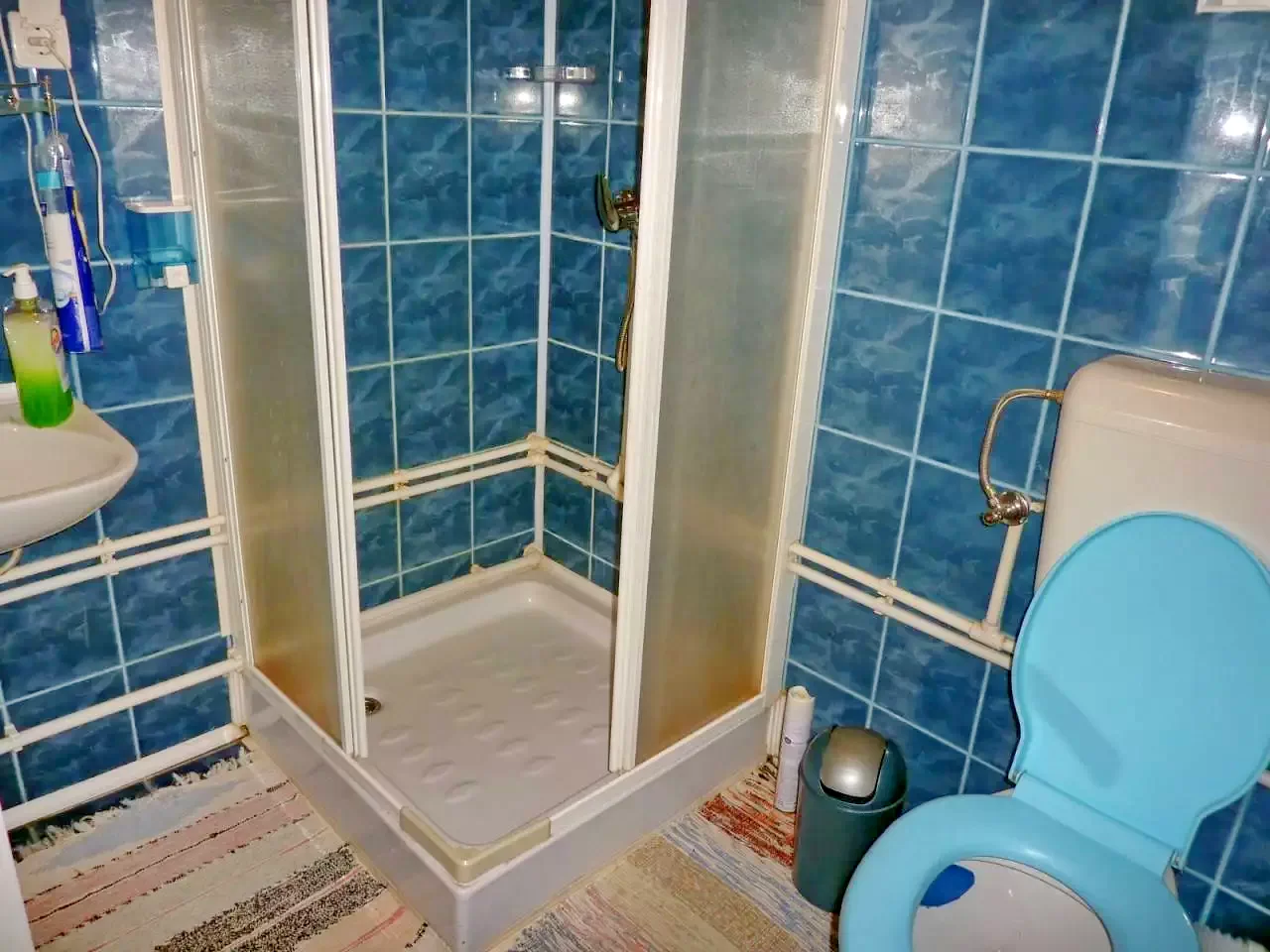 Nappali-ebédlő, konyha, fürdőszoba (zuhanyzókád, WC, kézmosó), szoba 3 egyszemélyes ággyal.