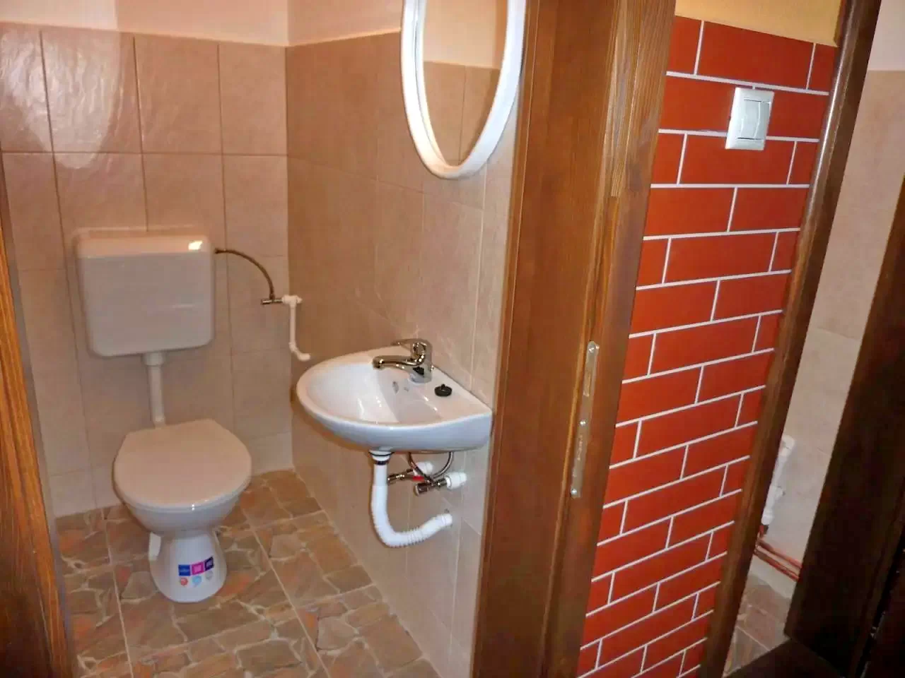- Az emeleten hat szoba várja a vendégeket: három szoba két-két egyszemélyes ággyal (2 fő/szoba), három szoba három-három egyszemélyes ággyal (3 fő/szoba), valamint két fürdőszoba (mindkettő zuhanyzókáddal, WC-vel, kézmosóval).