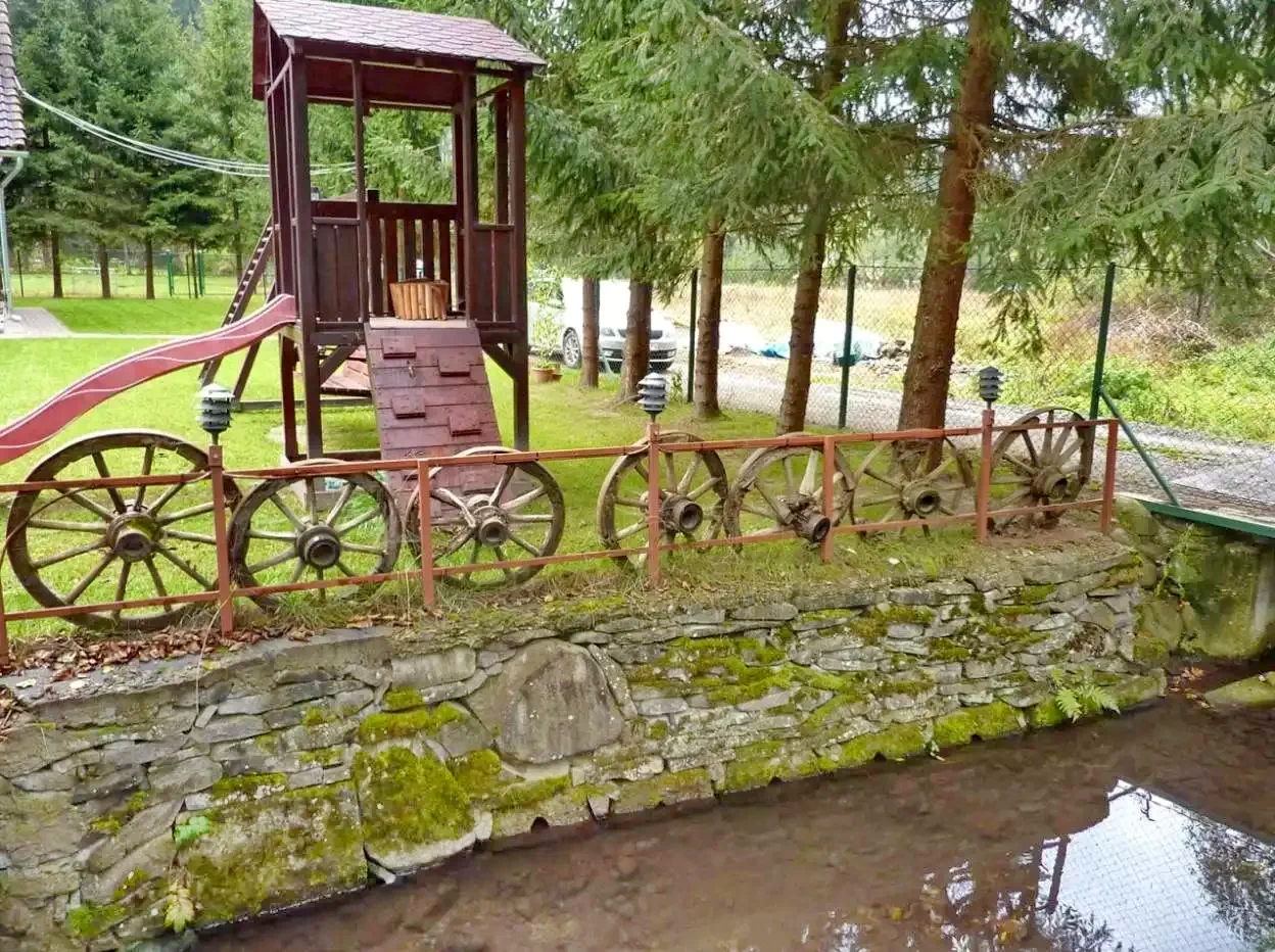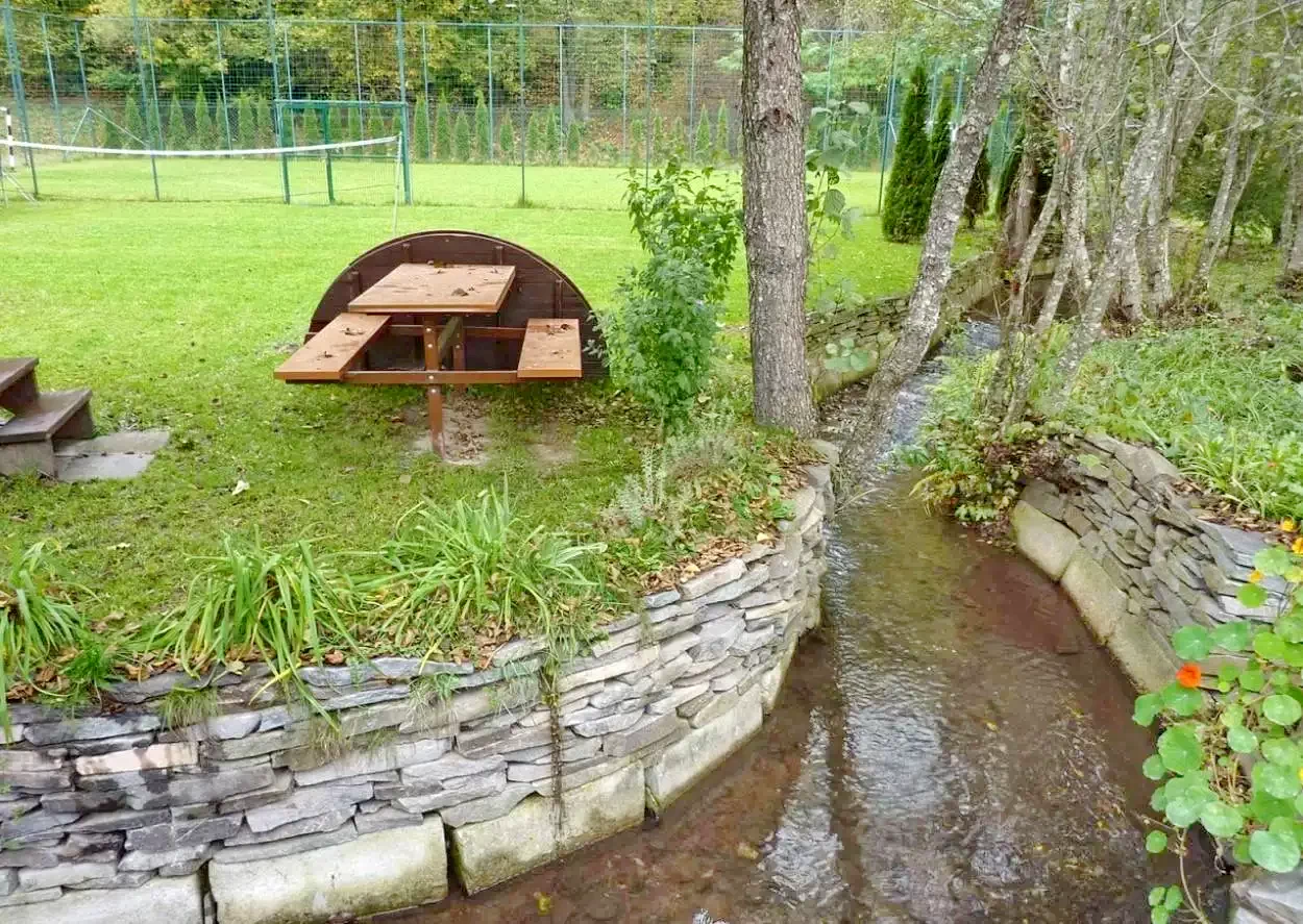 Környezet: 1500 m²-es zöldövezet, hegyek, patak és erdő közelében.